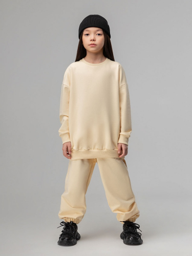 Материал футер трехнитка петля Состав 80% хлопок 20% полиэстер Костюм для детей дошкольного возраста. Толстовка прямого силуэта, свободная с рукавом реглан и притачной манжетой. Толстовка на утяжке по низу изделия. Брюки прямые свободные на притачном поясе с внутренней резинкой, на притачной манжете . Брюки с боковыми карманами, накладным карманов на задней половинке брюк.