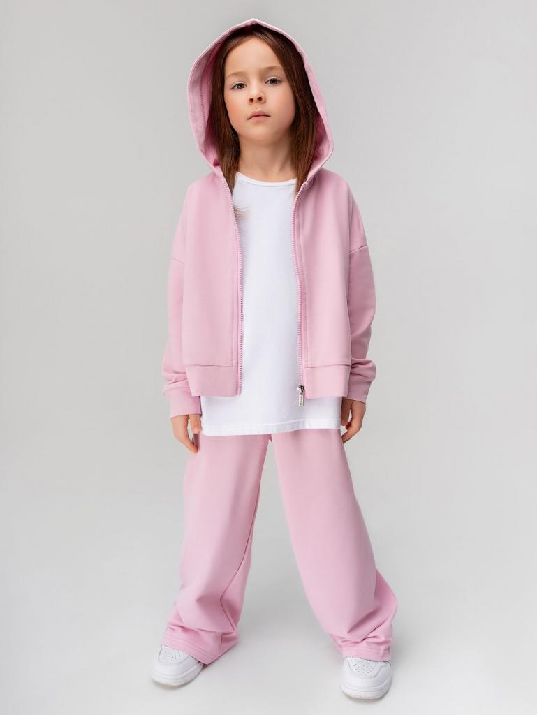 Артикул 11-589MU Состав 92% хлопок 8% лайкра Материал футер двухнитка Костюм: толстовка и брюки. Укороченная, прямая толстовка на молнии с капюшоном. Толстовка на поясе по низу, со спущенным плечом. Нашивка "Хорошая девочка". Свободные, прямые брюки с поясом с внутренней резинкой. Низ ровный.