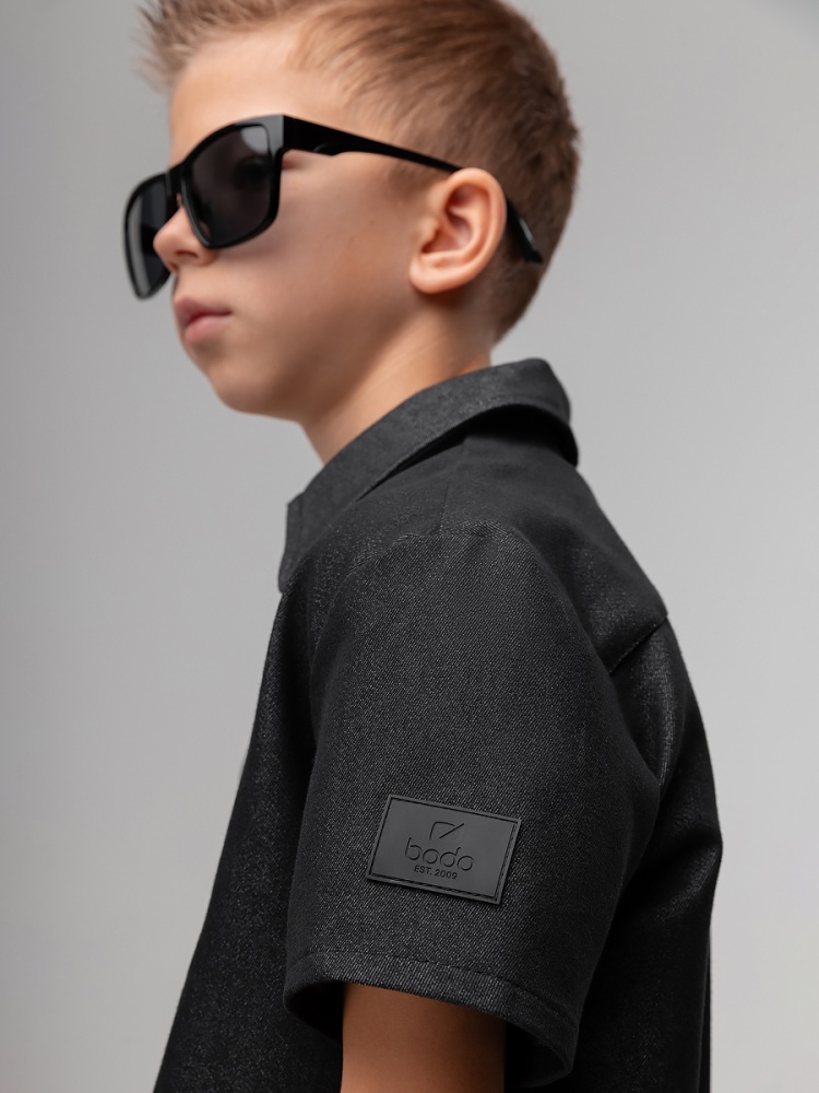 Артикул 11-591MU Состав 80% хлопок 20% полиэстер Материал джинсовая ткань Костюм: рубашка и шорты. Прямая рубашка без подкладки на кнопках, отложной воротничок, короткий рукав. Низ изделия прямой. Шорты прямые свободные на поясе с внутренней резинкой. Шорты с боковыми карманами.
