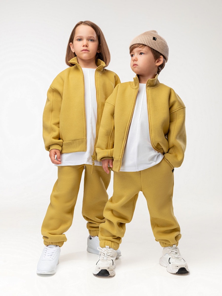 Материал футер трехнитка с начесом Состав 80% хлопок 20% полиэстер Костюм для детей дошкольного возраста. Толстовка свободного силуэта, с центральной бортовой застёжкой на тесьму молния, воротник стойка. Толстовка на притачном поясе по низу изделия, со спущенным плечом, с втачными рукавами с притачной манжетой.Брюки свободного силуэта, на притачном поясе с внутренней резинкой. Низ брюк с цельнокроеной манжетой на резинке. Брюки с боковыми карманами.
