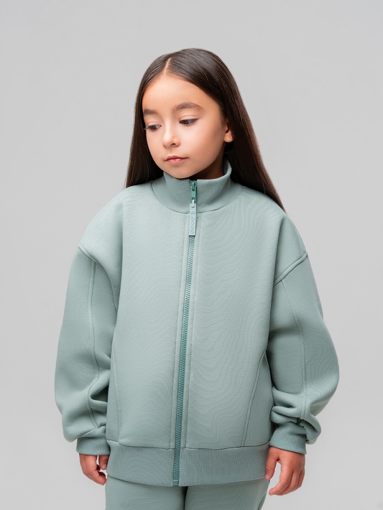 Материал футер трехнитка с начесом Состав 80% хлопок 20% полиэстер Костюм для детей дошкольного возраста. Толстовка свободного силуэта, с центральной бортовой застёжкой на тесьму молния, воротник стойка. Толстовка на притачном поясе по низу изделия, со спущенным плечом, с втачными рукавами с притачной манжетой.Брюки свободного силуэта, на притачном поясе с внутренней резинкой. Низ брюк с цельнокроеной манжетой на резинке. Брюки с боковыми карманами.