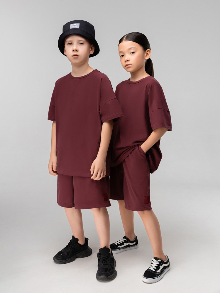 Материал кулирная гладь Состав 92% хлопок 8% лайкра Костюм с эффектом фрчи: футболка и шорты. Свободная футболка с коротким рукавом и прямые шорты с боковыми карманами, пояс на резинке.