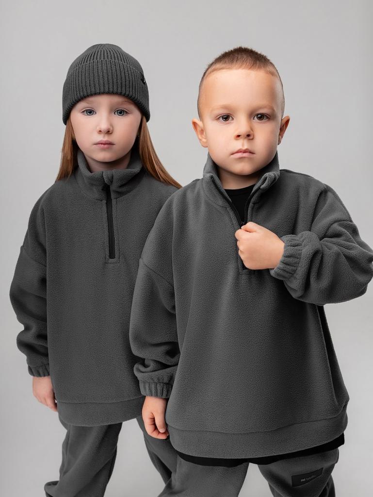 Артикул 11-646MU Материал флис Состав 100% полиэстер Костюм флисовый: толстовка и брюки. Свободная толстовка со спущенным плечом и рукавами с манжетой. Воротник стойка, застёжка на короткую молнию. Прямые, свободные брюки на поясе с внутренней резинкой. Низ брюк с манжетой на резинке. Брюки с боковыми карманами в боковых швах. Плотность флиса - 280 гр.