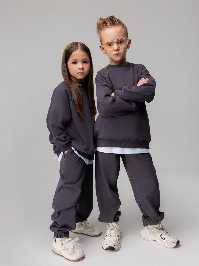 Артикул 11-649MU Материал футер трехнитка петля Состав 80% хлопок 20% полиэстер Костюм: свитшот и брюки. Свитшот прямого силуэта, с длинным рукавом на манжете. Свитшот с поясом по низу изделия. На спинке принт "Стихи не читаю Песни не пою" . Свободные брюки на поясе с внутренней резинкой. Низ брюк с манжетой на резинке. Брюки с боковыми карманами.