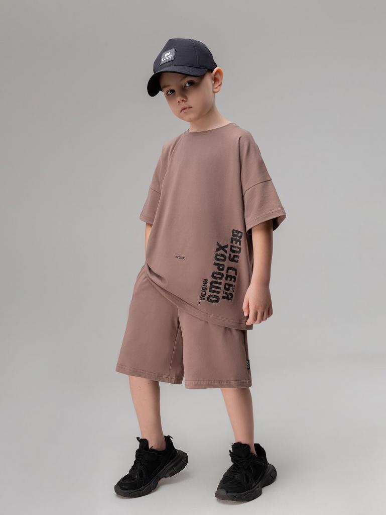 Артикул 11-659MU Состав 92% хлопок 8% лайкра Материал кулирная гладь Костюм: футболка и шорты. Свободная футболка с коротким рукавом. Горловина футболки округлой формы. Низ изделия прямой. принт на полочке "Веду себя хорошо". Шорты прямые, свободные на поясе с внутренней резинкой. Шорты с боковыми карманами отрезной бочок. Низ изделия прямой.