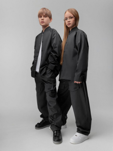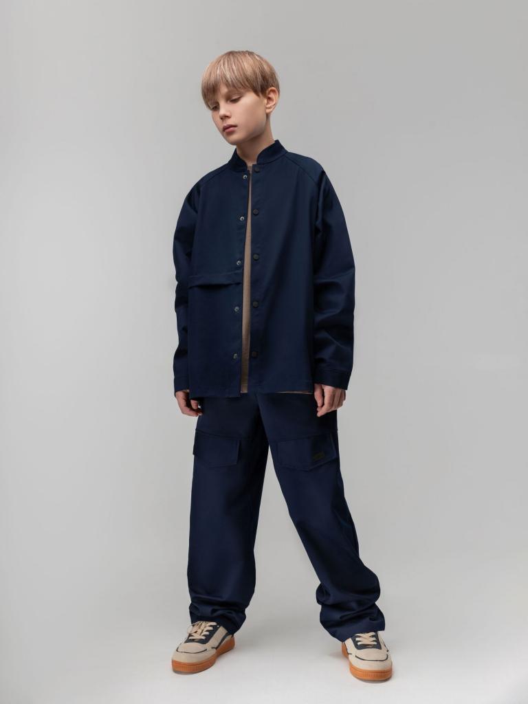 Артикул 46-156MU Состав 80% хлопок 20% полиэстер Материал смесовая ткань саржевого переплетения Костюм: рубашка и брюки. Свободная рубашка на кнопках, воротник стойка, правая полочка со складкой. Низ изделия прямой. Свободные брюки, расширенные в бёдрах, низ изделия прямой. Брюки с боковыми карманами. На передних половинках декоративные клапаны, на поясе шлёвки. Плотность саржевого переплетения 240 гр.