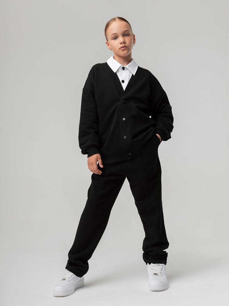 Артикул 46-123МU Состав 80% хлопок 20% полиэстер Материал футер двухнитка Костюм из материала пике: толстовка и брюки. Свободная толстовка на кнопках, длинный рукав, спущенное плечо. Толстовка без карманов. Прямые брюки, слегка зауженные к низу, на задних половинках декоративная отстрочка от низа до уровня колен. Боковые карманы.