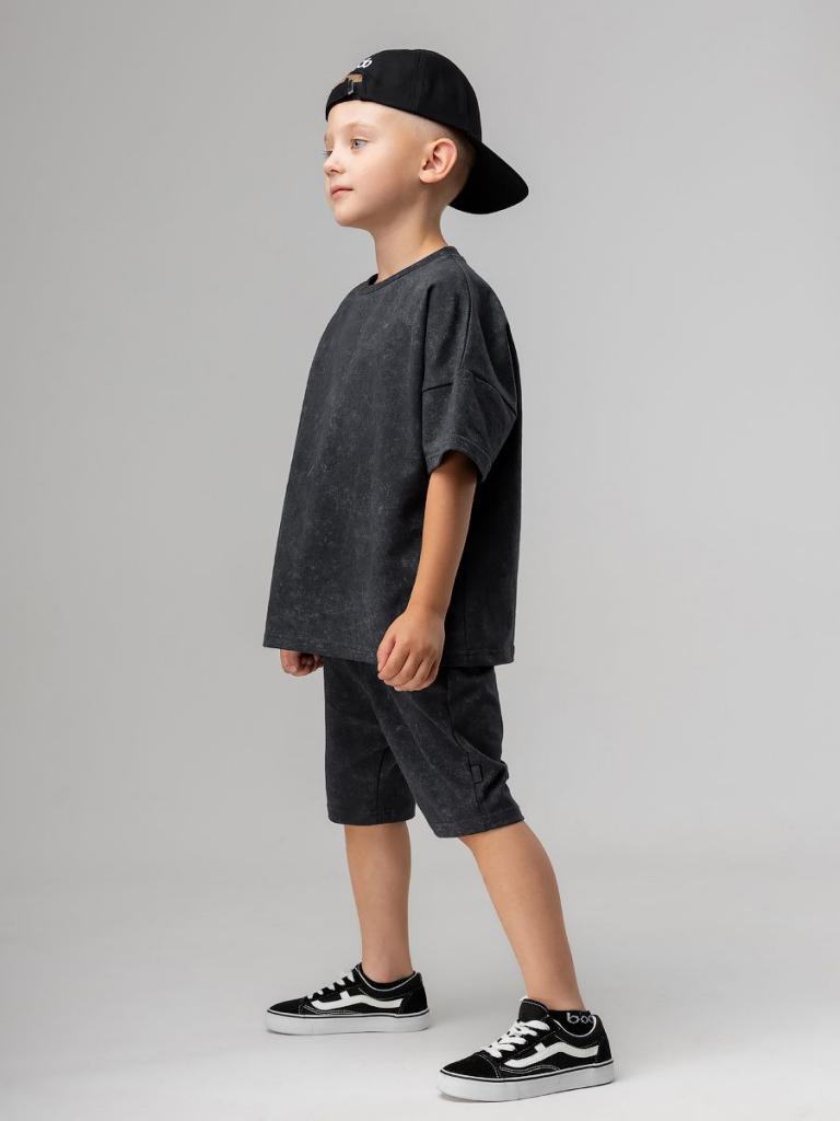 Артикул 11-364МU Состав 92% хлопок 8% лайкра Материал футер двухнитка Костюм: футболка и шорты. Свободная футболка с короткими рукавами, округлый вырез горловины. Шорты свободного покроя, пояс - эластичная резинка, карманы с отрезным бочком.