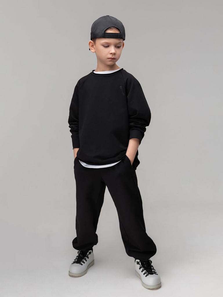Артикул 11-666MU Состав 92% хлопок 8% лайкра Материал футер двухнитка Костюм: лонгслив и брюки. Свободный лонгслив с необработанными краями. Горловина округлой формы. Прямые, свободные брюки на поясе с внутренней резинкой. Низ брюк с манжетой на резинке. Брюки с боковыми карманами в боковых швах.