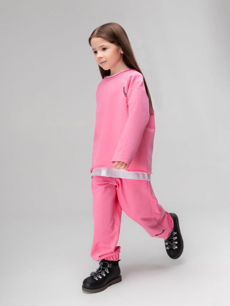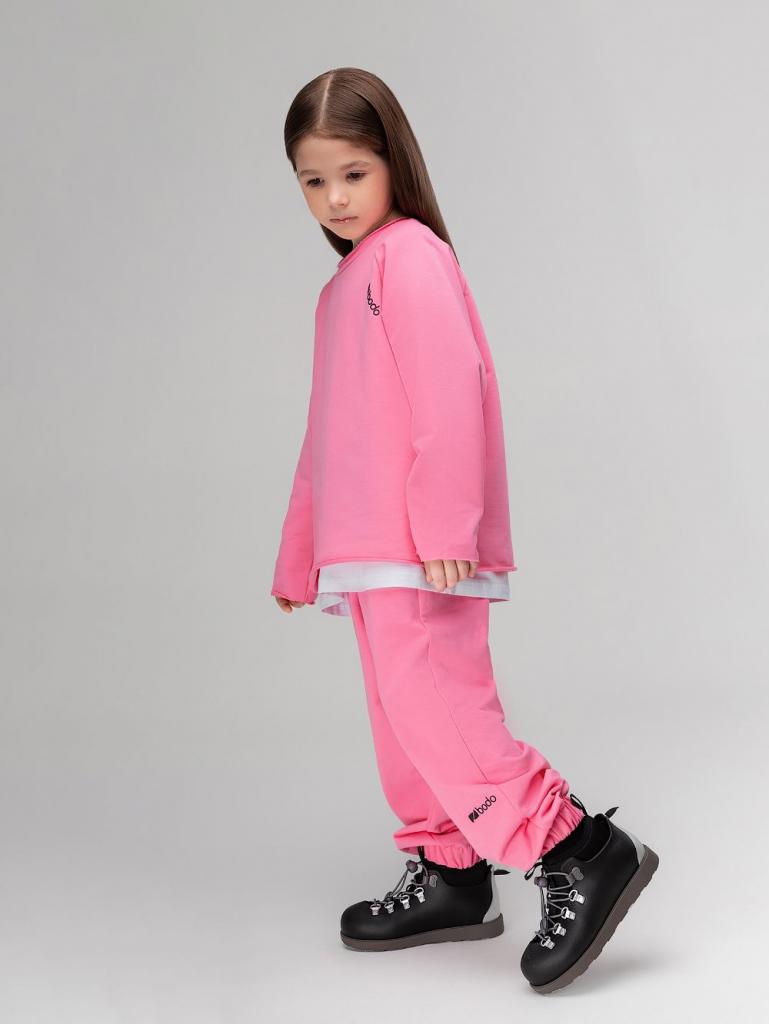 Артикул 11-666MU Состав 92% хлопок 8% лайкра Материал футер двухнитка Костюм: лонгслив и брюки. Свободный лонгслив с необработанными краями. Горловина округлой формы. Прямые, свободные брюки на поясе с внутренней резинкой. Низ брюк с манжетой на резинке. Брюки с боковыми карманами в боковых швах.