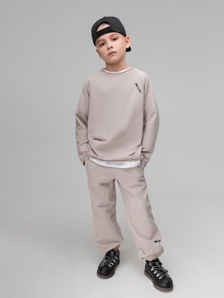 Артикул 11-666MU Состав 92% хлопок 8% лайкра Материал футер двухнитка Костюм: лонгслив и брюки. Свободный лонгслив с необработанными краями. Горловина округлой формы. Прямые, свободные брюки на поясе с внутренней резинкой. Низ брюк с манжетой на резинке. Брюки с боковыми карманами в боковых швах.