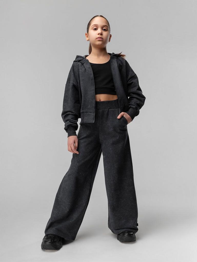 Артикул 46-137MU Состав 92% хлопок 8% лайкра Материал футер двухнитка Костюм для детей школьного возраста. Толстовка прямого силуэта, укороченная, с центральной бортовой застёжкой на тесьму молния, на притачном поясе по низу изделия, со спущенным плечом, с втачными рукавами с притачной манжетой, с втачным капюшоном. Брюки свободные, расширенные к низу, на притачном поясе с внутренней резинкой со шнурком. С боковыми карманами отрезной бочок. Низ изделия обработан на спец. машине.