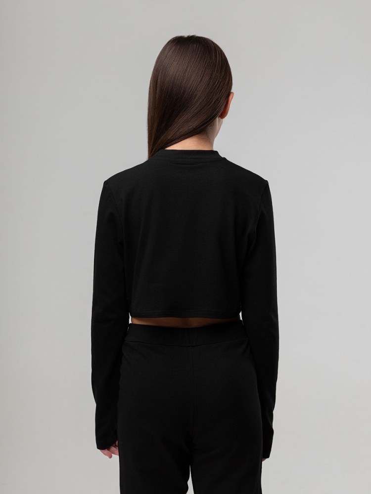 Материал кулирная гладь Состав 92% хлопок 8% лайкра Свободный, укороченный лонгслив с длинным рукавом и отверстием под большой палец. Воротник стойка.