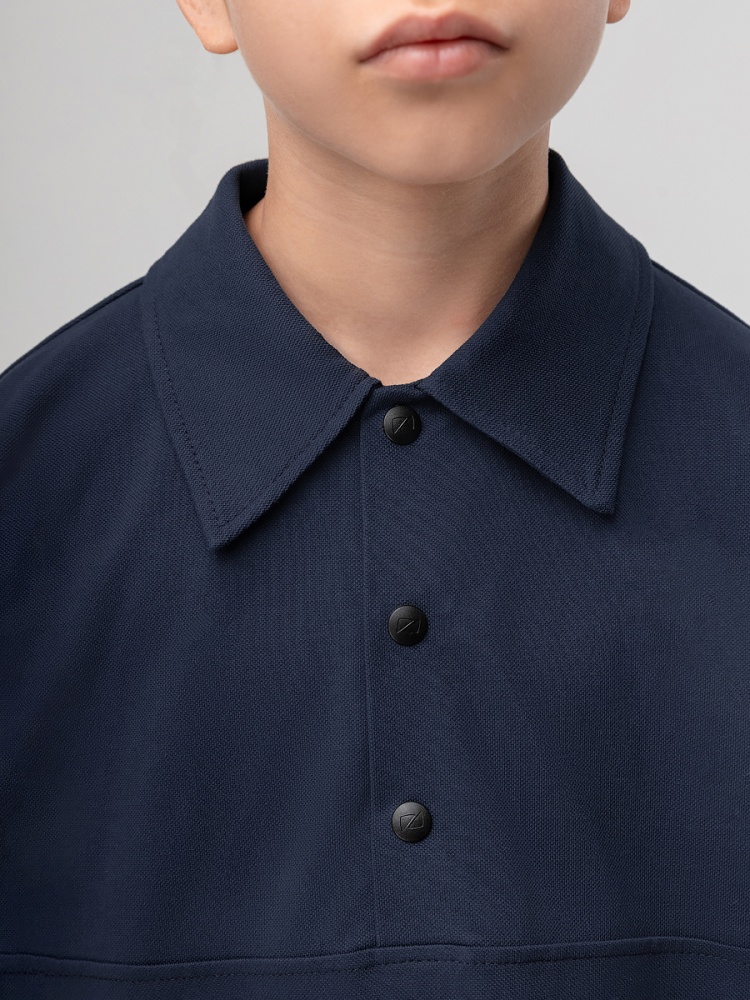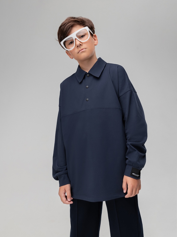 Материал кулирная гладь Состав 92% хлопок 8% лайкра Лонгслив свободного силуэта из материала пике, с длинным рукавом. Воротник с застежкой на кнопках.