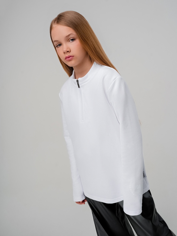 Лонгслив ПИКЕ с короткой молнией 42-47MU; белый