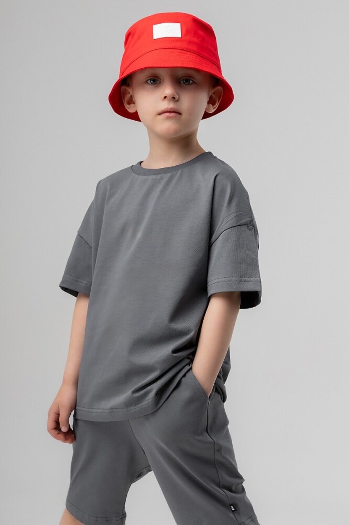 Артикул 11-373МU Состав 92% хлопок 8% лайкра Материал кулирная гладь Костюм: футболка и шорты. Свободная футболка с коротким рукавом, округлый вырез горловины. Шорты на пояс - эластичная резинка, боковые карманы.