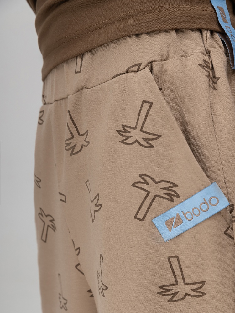 Материал кулирная гладь Состав 92% хлопок 8% лайкра Шорты прямые, пояс с внутренней резинкой. Шорты с боковыми карманами. Набивка "пальмы"
