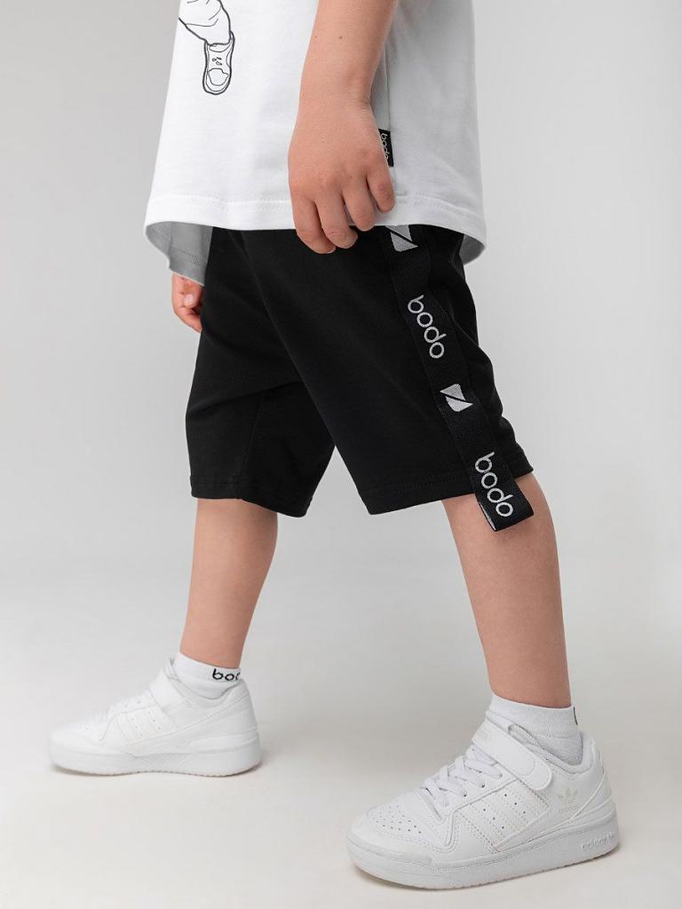 Артикул 8-64МU Состав 92% хлопок 8% лайкра Материал футер двухнитка Свободные прямые шорты с брендированной лентой по бокам. детские. Шорты на поясе с эластичной резинкой, карманы с отрезным бочком.