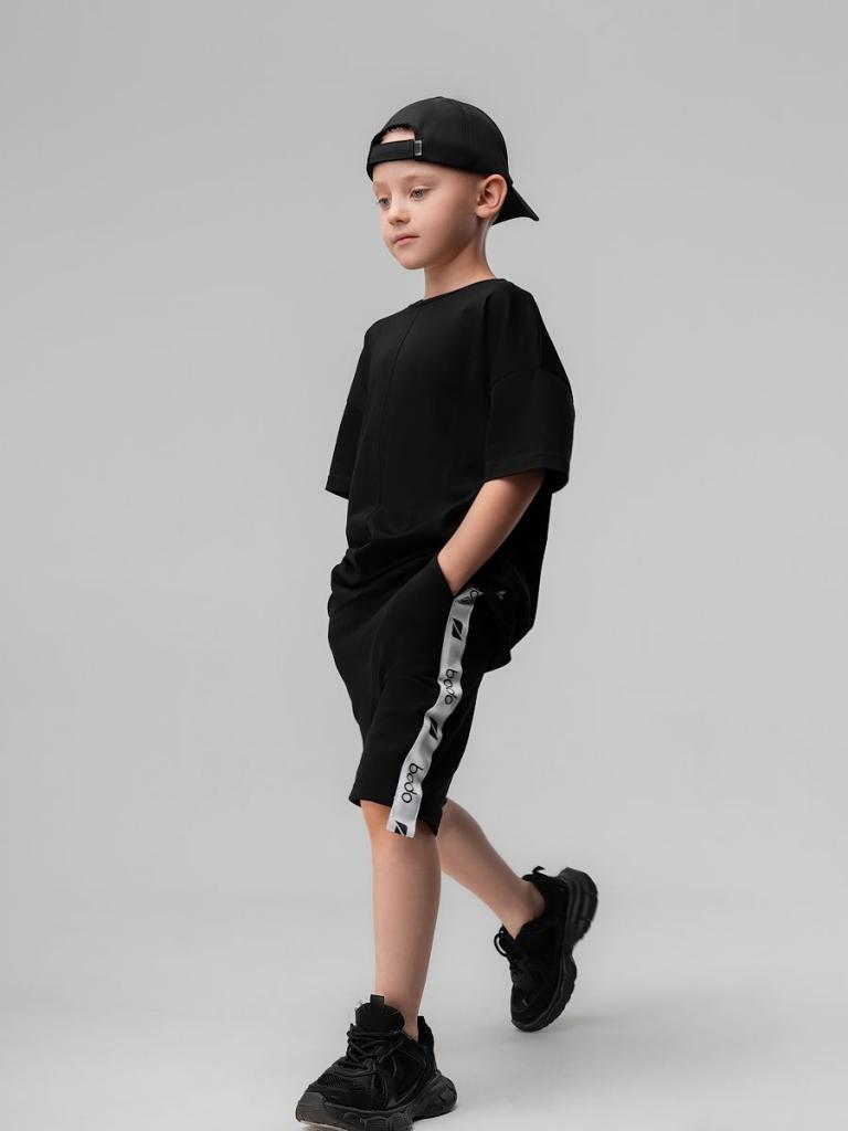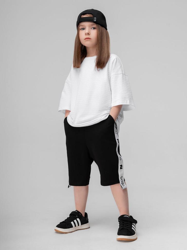 Артикул 8-64МU Состав 92% хлопок 8% лайкра Материал футер двухнитка Свободные прямые шорты с брендированной лентой по бокам. детские. Шорты на поясе с эластичной резинкой, карманы с отрезным бочком.