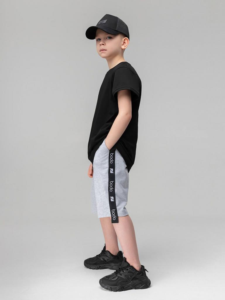 Артикул 8-64МU Состав 92% хлопок 8% лайкра Материал футер двухнитка Свободные прямые шорты с брендированной лентой по бокам. детские. Шорты на поясе с эластичной резинкой, карманы с отрезным бочком.