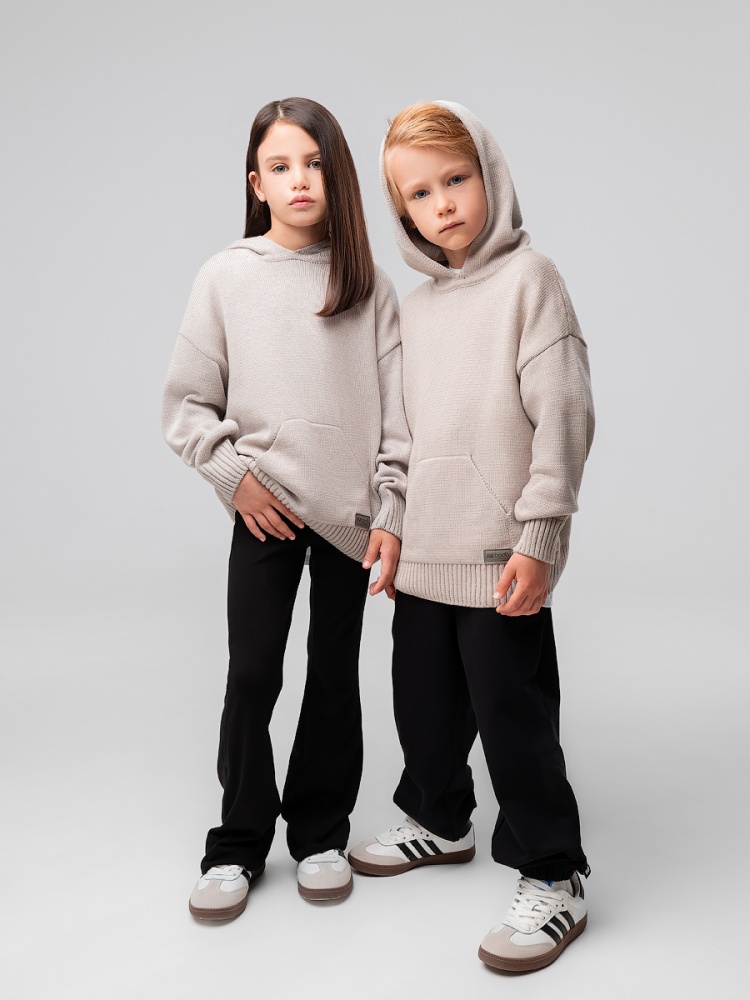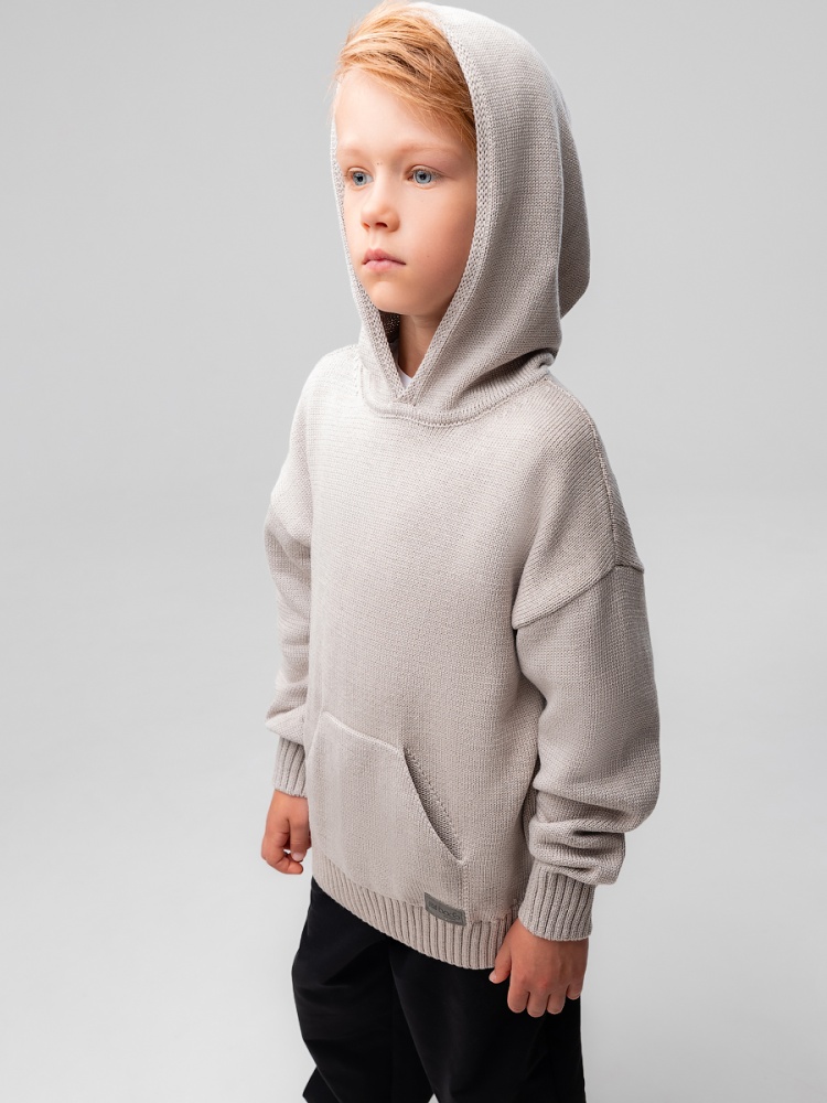 Материал 50% хлопок 50% акрил Состав 50% хлопок 50% акрил Свитер с капюшоном для детей из высококачественной пряжи. Детали: свободный покрой, с карманом кенгуру. Унисекс.