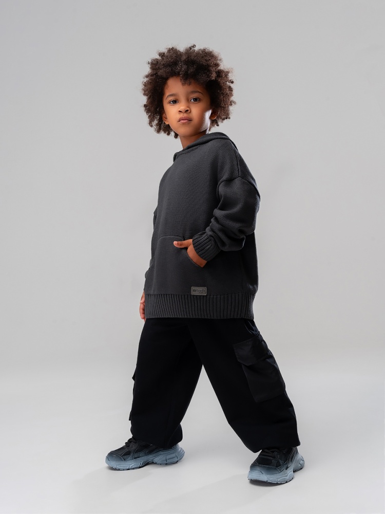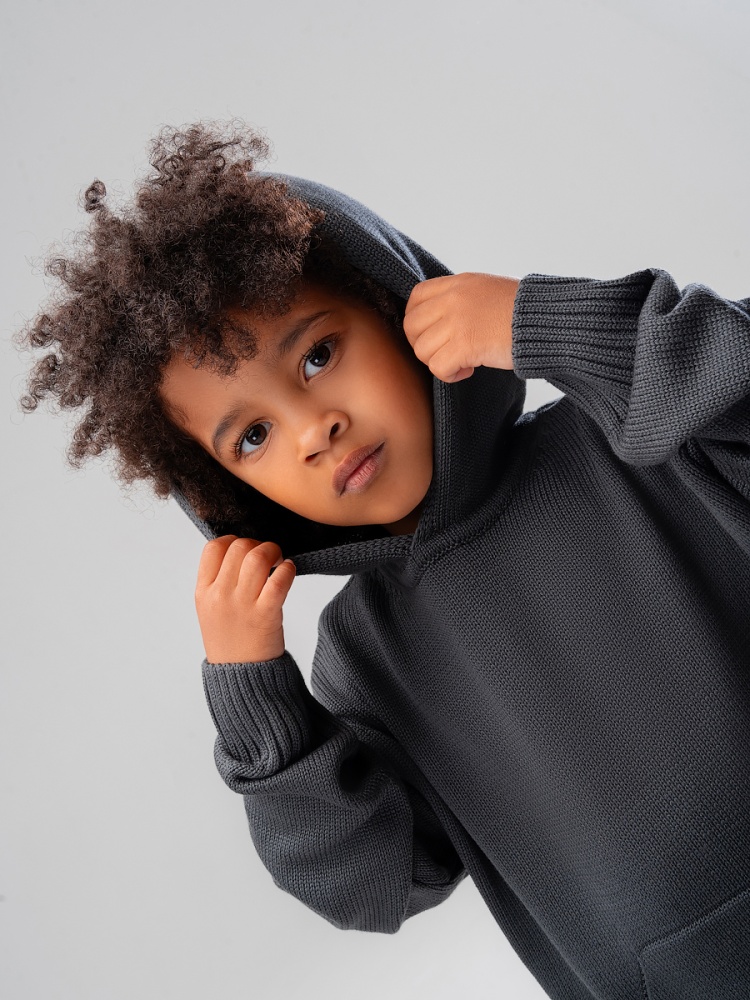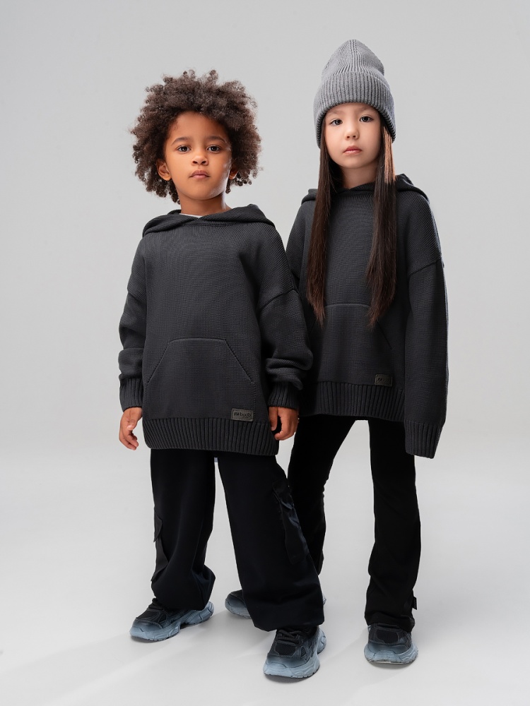 Материал 50% хлопок 50% акрил Состав 50% хлопок 50% акрил Свитер с капюшоном для детей из высококачественной пряжи. Детали: свободный покрой, с карманом кенгуру. Унисекс.
