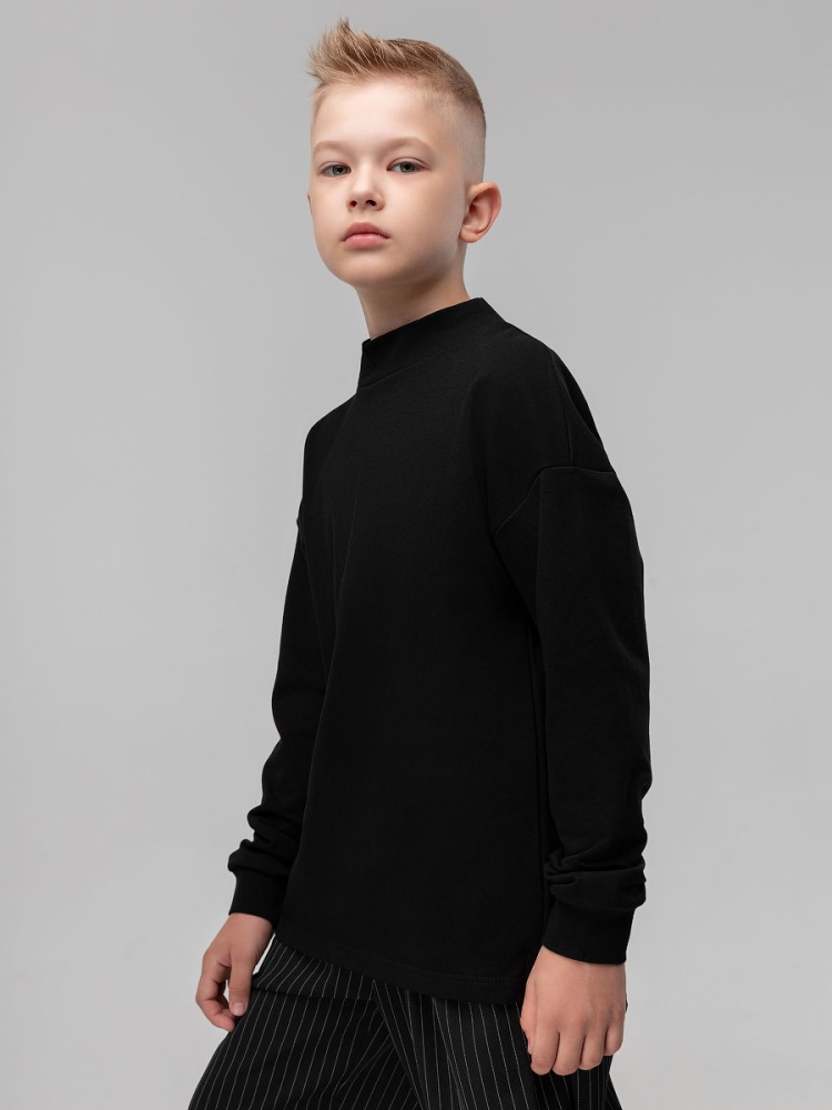 Материал футер двухнитка Состав 92% хлопок 8% лайкра Свитшот с удлиненной спинкой и разрезами по бокам. Длинный рукав на манжетах, воротник стойка.