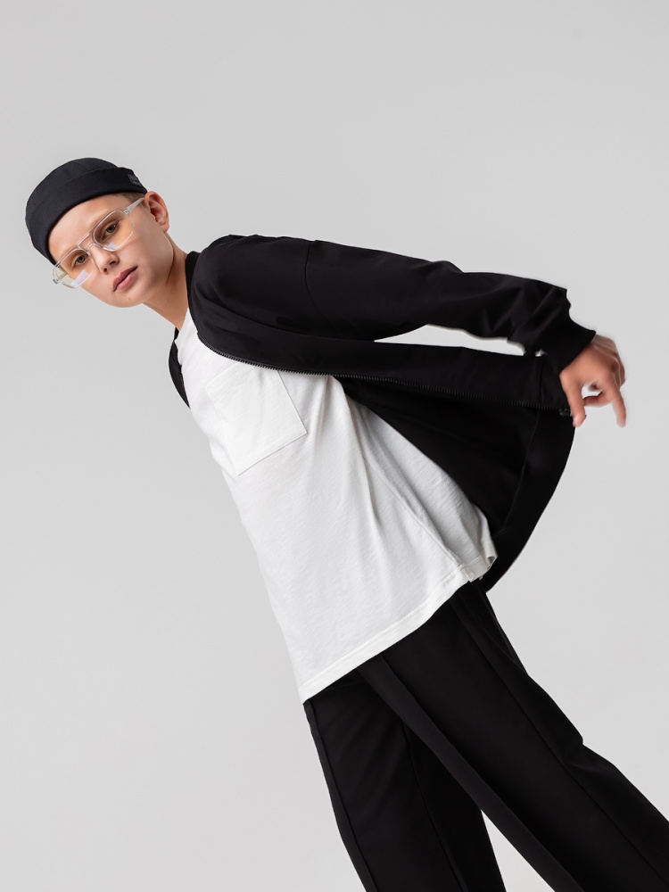 Материал футер двухнитка Состав 92% хлопок 8% лайкра Толстовка свободная, без капюшона на молнии, со спущенным плечом и длинным рукавом.