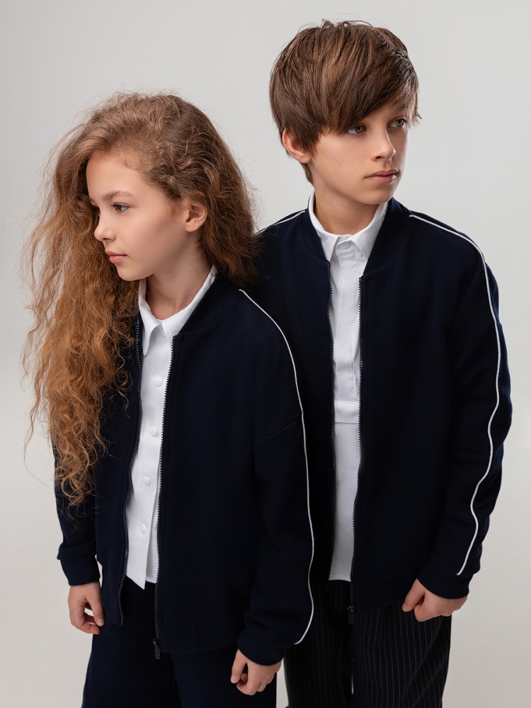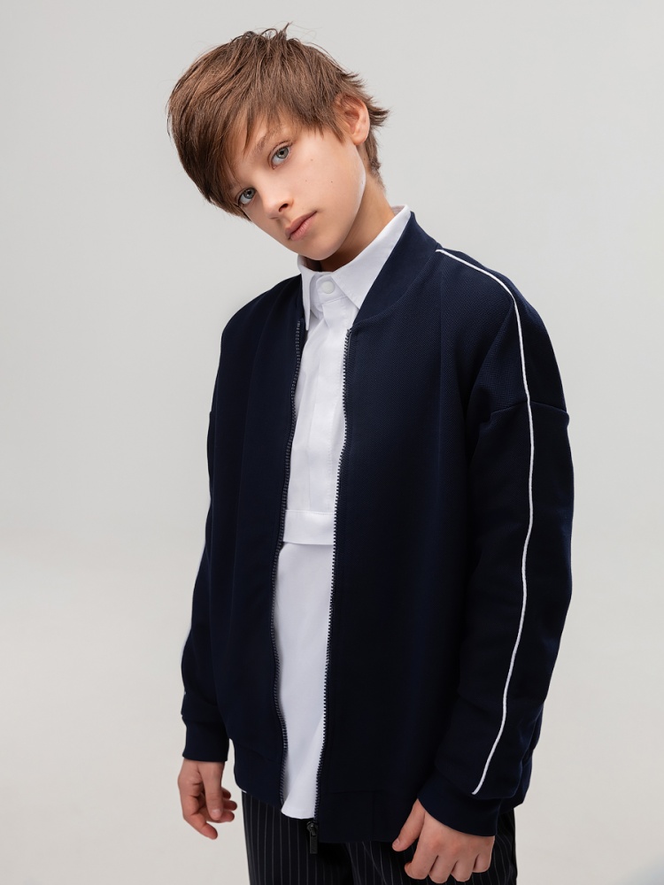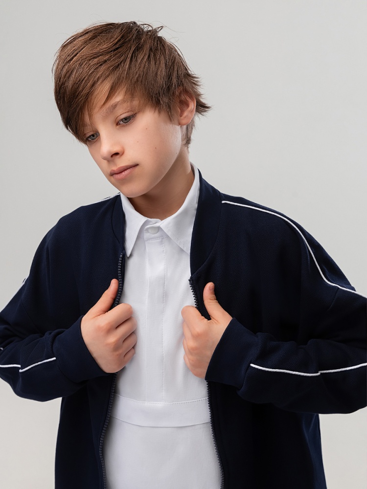 Толстовка ПИКЕ с белым кантом 38-66MU; темно-синий