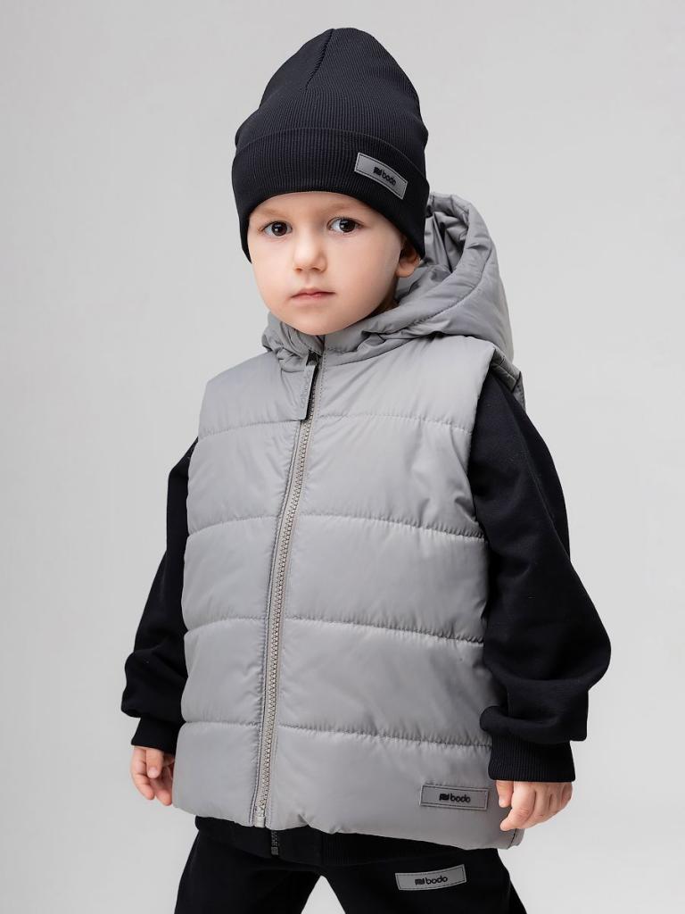 Артикул 30-2MU Материал курточная ткань Состав 100% полиэстер Жилет для детей ясельного возраста. Жилет утеплённый на подкладке, прямого силуэта, с центральной бортовой застёжкой на тесьму молния. Жилет с капюшоном. Материал верха: курточная ткань 100% полиэстер, утеплитель Hetta Filt 150 г/кв.м, подкладочный материал кулирная гладь 100% хлопок.