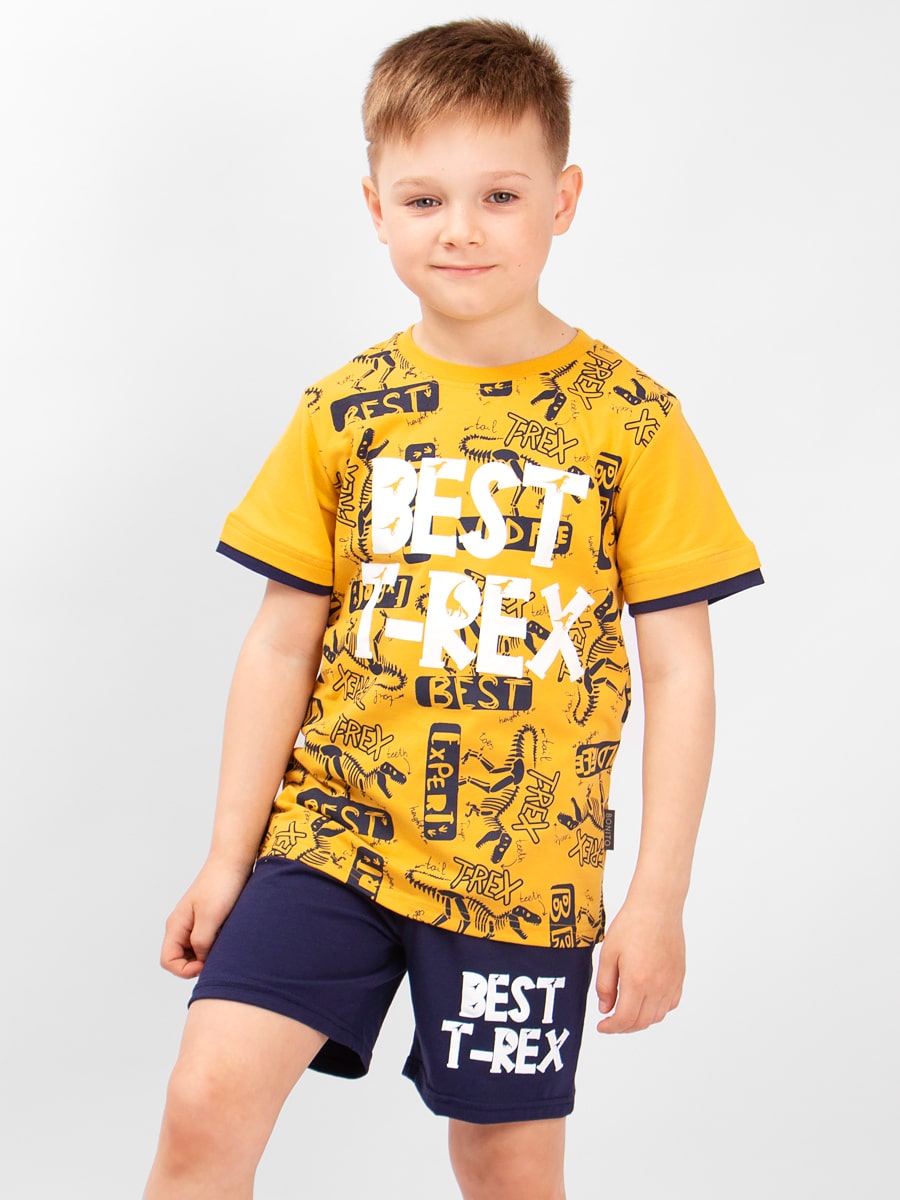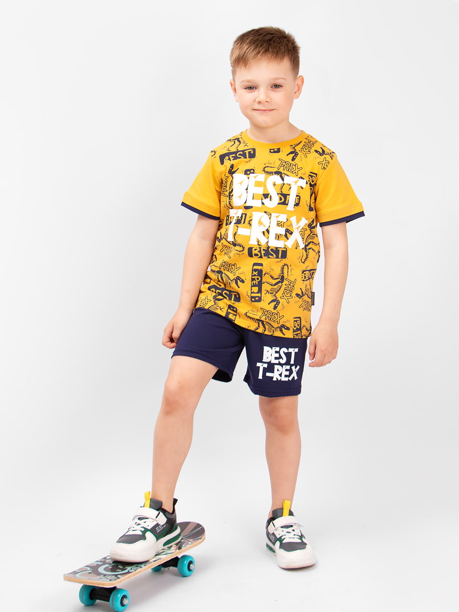 Летний костюм для мальчика. Мягкая поверхность материала из хлопка приятная к телу ребенка. Ткань не доставит забот при стирке, обладает воздухопроницаемыми качествами. У модели достаточно широкая горловина, вещь легко надеть и снять. Такой универсальный костюм идеально вольется в летний гардероб, а яркие расцветки и оригинальные принты понравятся каждому мальчишке.