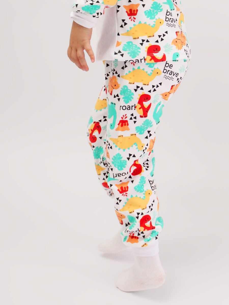 Пижама для девочки из двух предметов. Кофточка свободного кроя не стесняет движений, на плече заклёпки для удобного переодевания. Брюки с эластичным поясом и манжетами по низу. Ткань - интерлок мягкая позволяет коже дышать и сохраняет тепло.