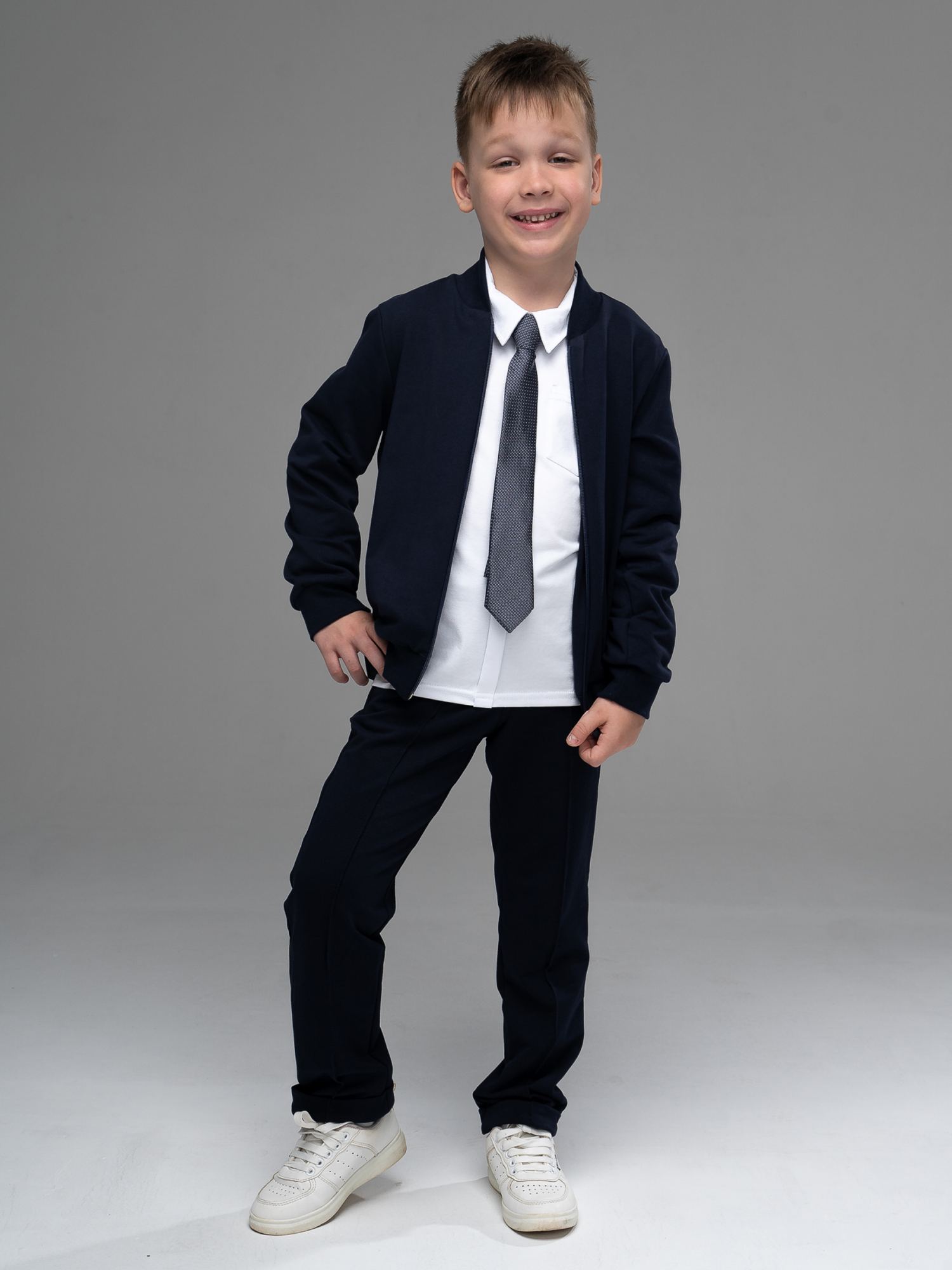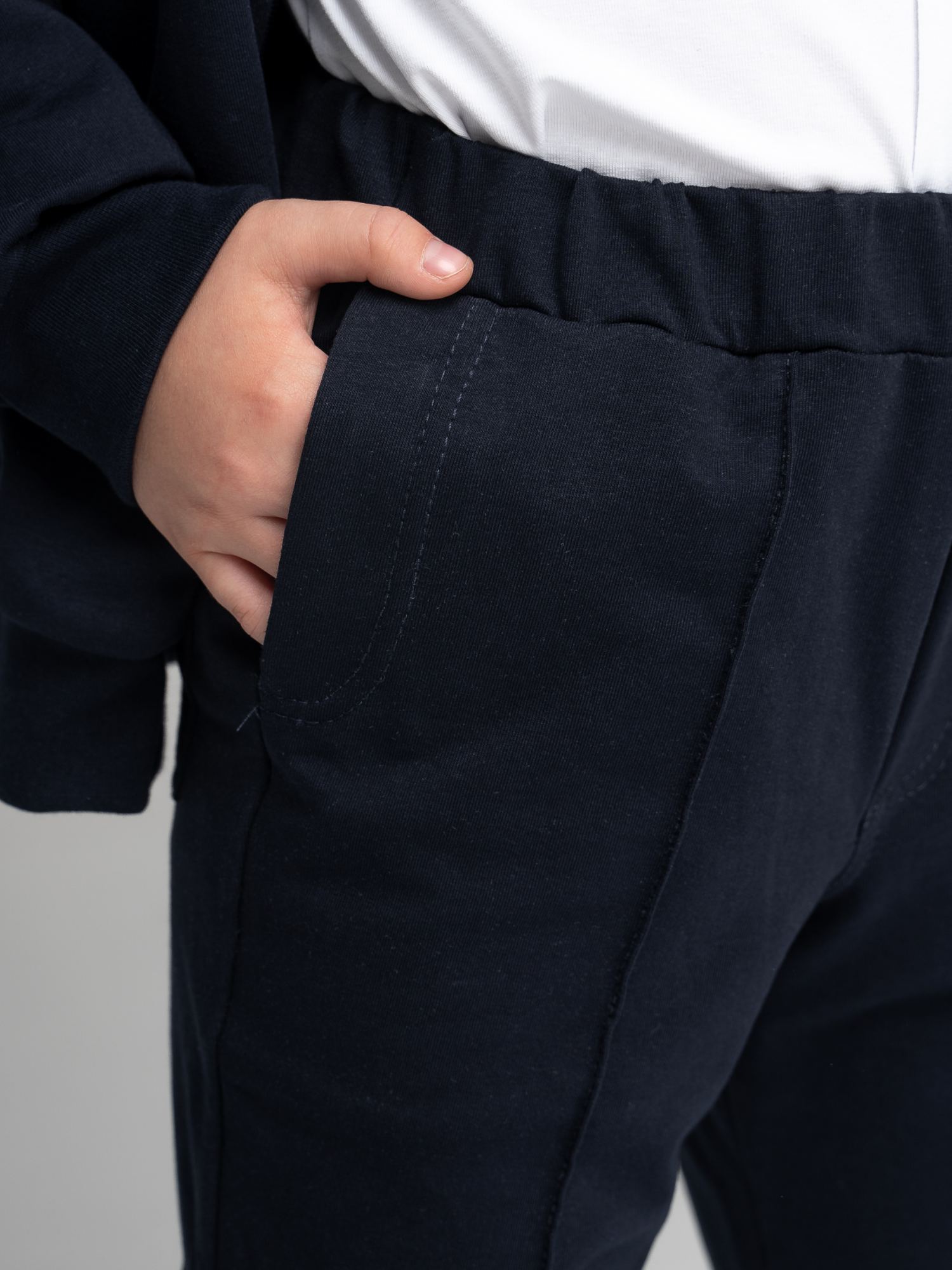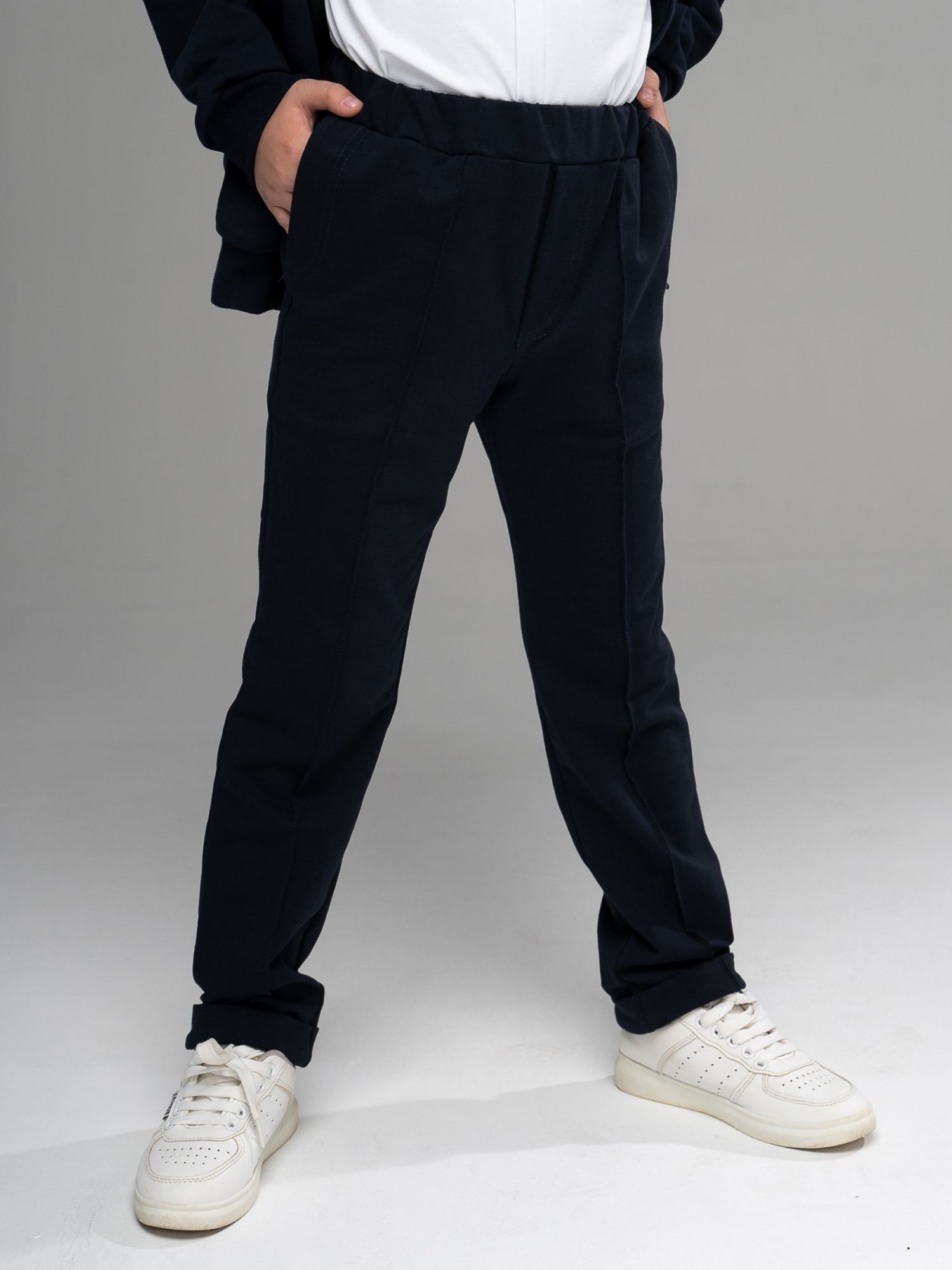 Качество пошива порадовало. Ткань плотная. В размер. Идинственное, что огорчило узкие штанины (в нашей школе делают замечание).