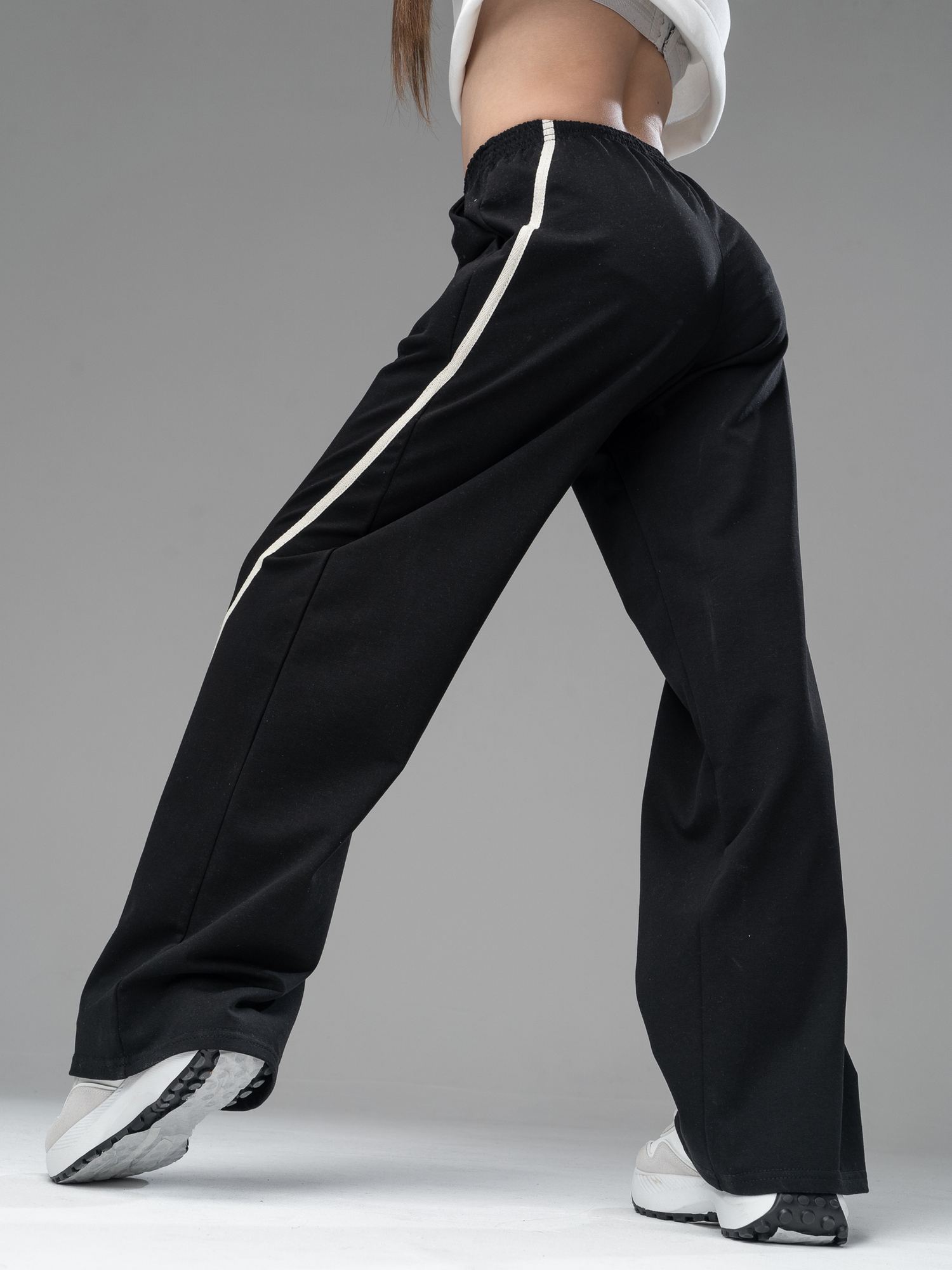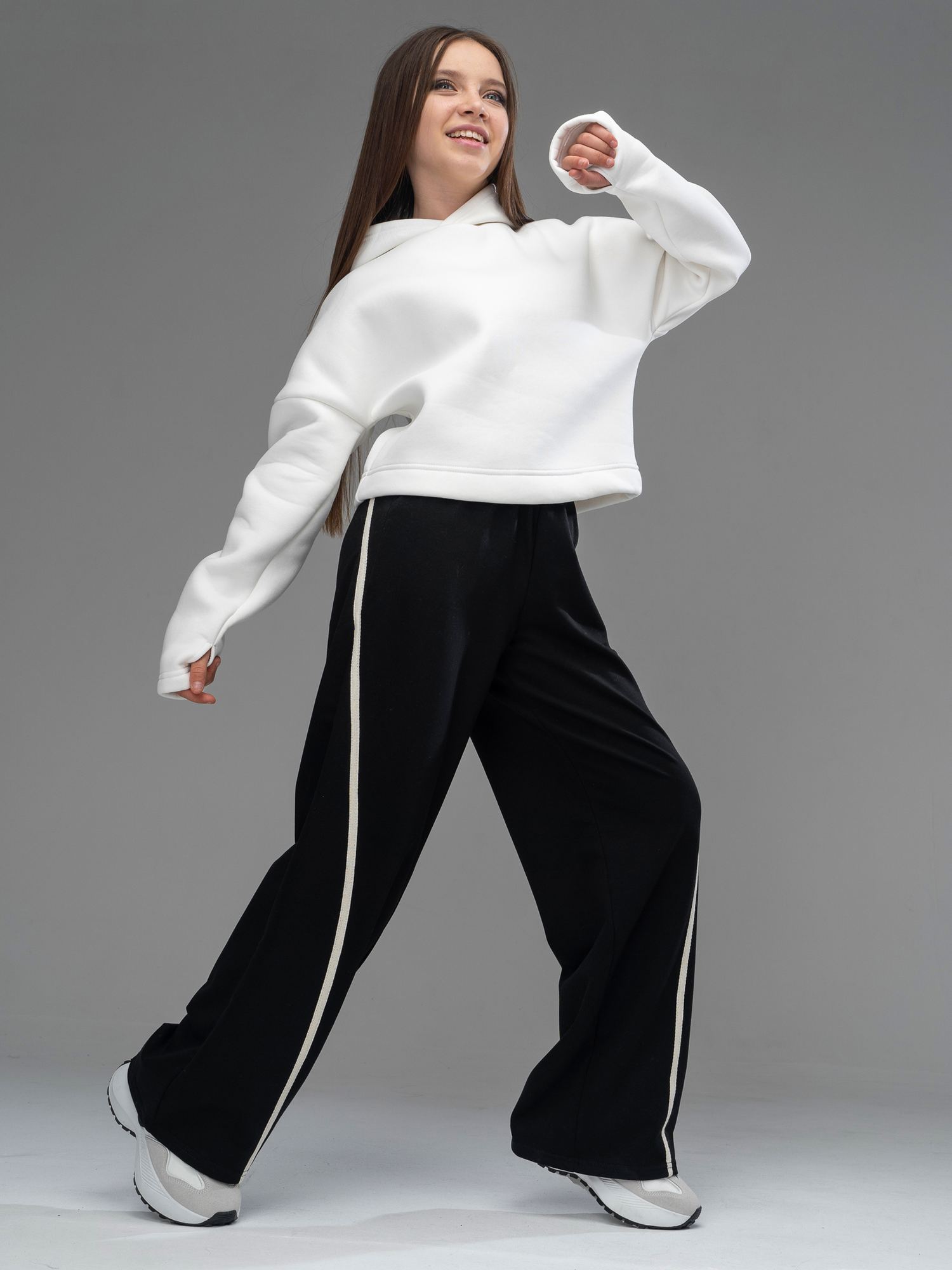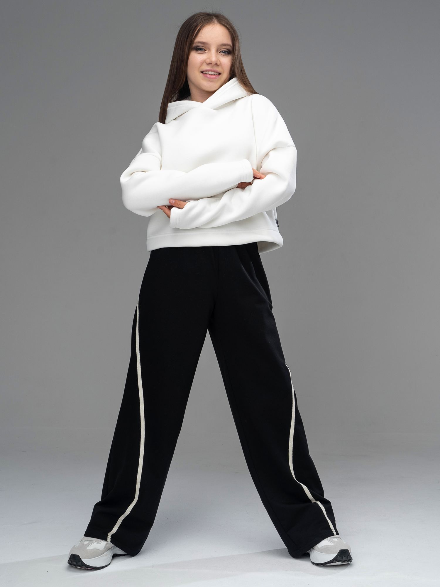 Брюки палаццо из футера черного цвета для девочки свободного силуэта с боковыми карманами - это идеальное сочетание комфорта, качества, стиля и практичности. Брюки для девочки выполнены из футера 2х нитки высшего качества Пенье. Брюки для девочки имеют следующий состав ткани - 92% хлопок, 8% полиэстер. Детские брюки имеют отделку в виде настроченной тесьмы контрастного цвета, что делает их стильными и модными. Спортивные детские летние штаны с боковыми карманами устойчивы к образованию катышек. Одним из ключевых преимуществ брюк палаццо - отсутствие утепления, начеса и флиса. Это означает, что Ваш ребенок может носить их весной и летом. Спортивные брюки для девочки комфортны в школу на физкультуру- как спортивная форма, для занятия спортом, как одежда для подростка, для дома- как домашняя одежда. Сочетание спортивной эстетики и комфорта делает их универсальными и позволяет создавать красивые и стильные образы. Стильные широкие штаны для девочек подходят для танцев хип хоп и других направлений. Брюки современного свободного кроя с удобной посадкой. Летние трикотажные спортивные штаны станут отличным подарком по любому поводу. Изделие выполнено из трикотажа премиального качества - ПЕНЬЕ, с содержанием хлопка более 92%