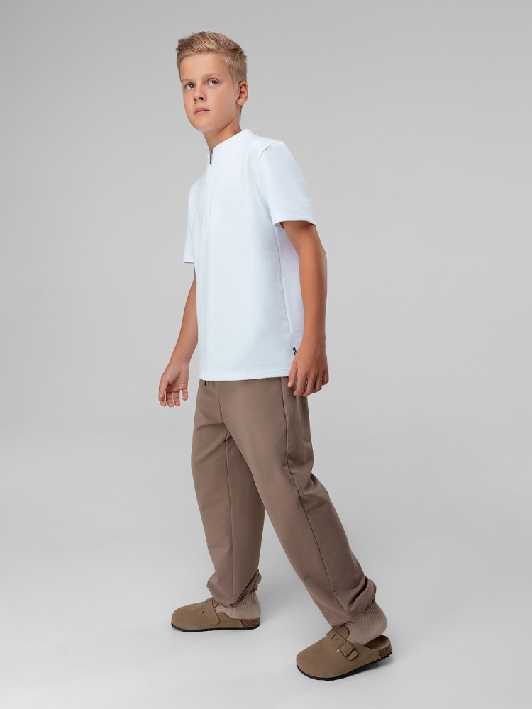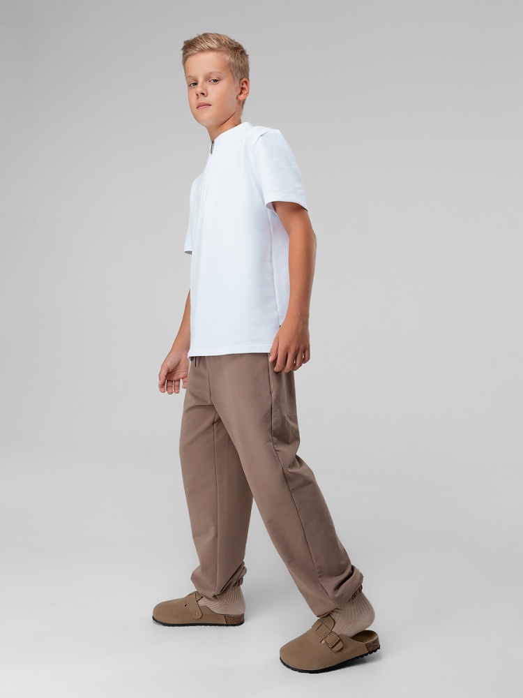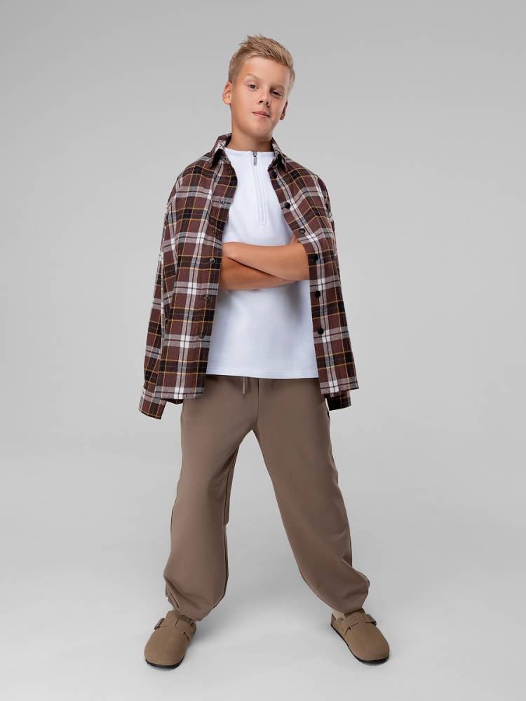 Материал футер двухнитка Состав 92% хлопок 8% лайкра Брюки спортивные для детей школьного возраста. Брюки прямые свободные на притачном поясе с внутренней резинкой. Низ брюк с цельнокроеной манжетой на резинке. Брюки с боковыми карманами.