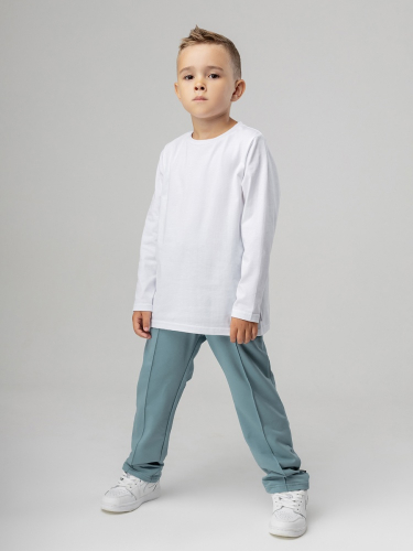 Материал футер двухнитка Состав 92% хлопок 8% лайкра Брюки для детей дошкольного возраста. Брюки прямые свободные с внутренней резинкой в поясе, по бокам карманы с отрезным бочком, отстроченные стрелки, низ брюк ровный. Состав: футер двухнитка 92% хлопок 8% лайкра