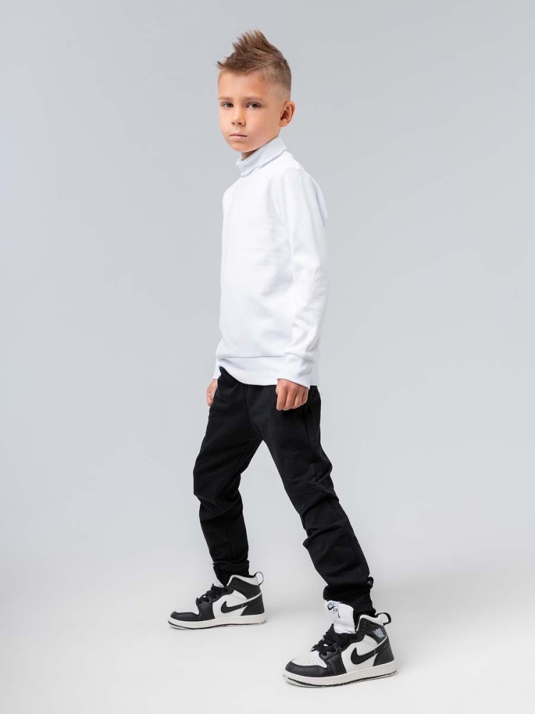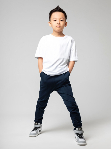 Материал футер двухнитка Состав 92% хлопок 8% лайкра Брюки- джоггеры детские. Детали: полуприлегающий покрой, пояс - эластичная резинка, низ изделия- манжеты, карманы с отрезным бочком. Состав: футер двухнитка 92% хлопок 8% лайкра