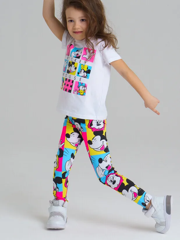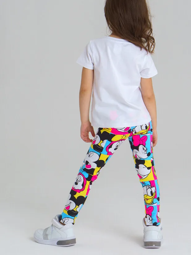 Леггинсы с принтом Disney. Размер изделия на фото - 110, параметры модели (см): рост 111, обхват груди-талии-бедер: 55-56-56. Высокое содержание хлопка 95%. Благодаря наличию эластана в составе ткани изделие держит форму и меньше мнется. Жаккардовая резинка по поясу.