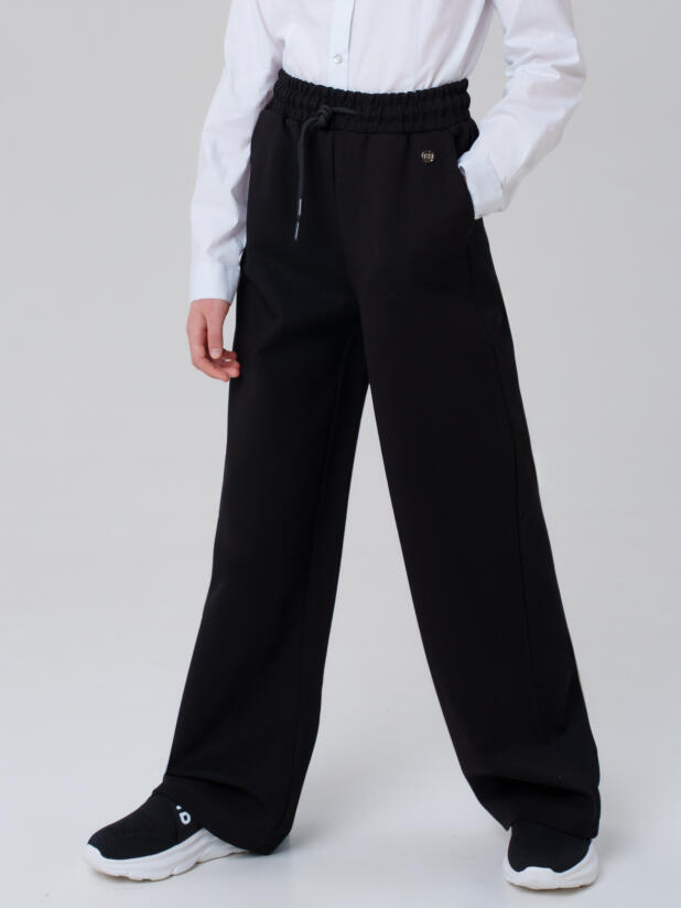 Свободный крой и продуманная посадка обеспечивают максимальный комфорт на занятиях, переменах и внеурочных мероприятиях. Универсальный чёрный цвет делает эти школьные штаны для девочек отличной основой для любого образа — как делового, так и повседневного.