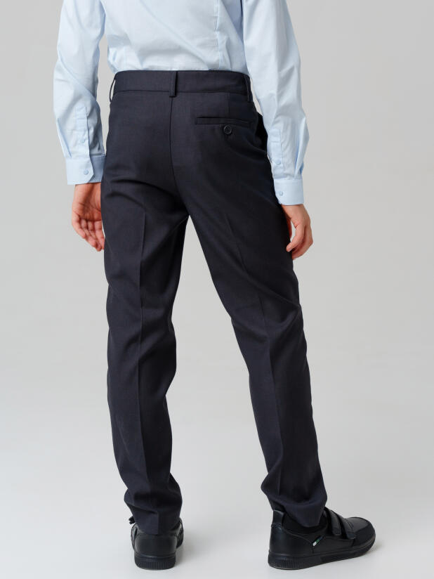 Материал практичен и неприхотлив в уходе: школьные штаны легко стираются, быстро сохнут и сохраняют форму после многократных стирок при температуре до 30°C.