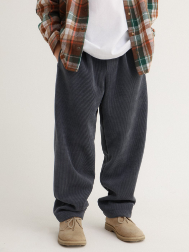 Брюки из вельвета на трикотажной основе, свободного кроя. Карманы по бокам, пояс на резинке, что делает модель максимально комфортной.