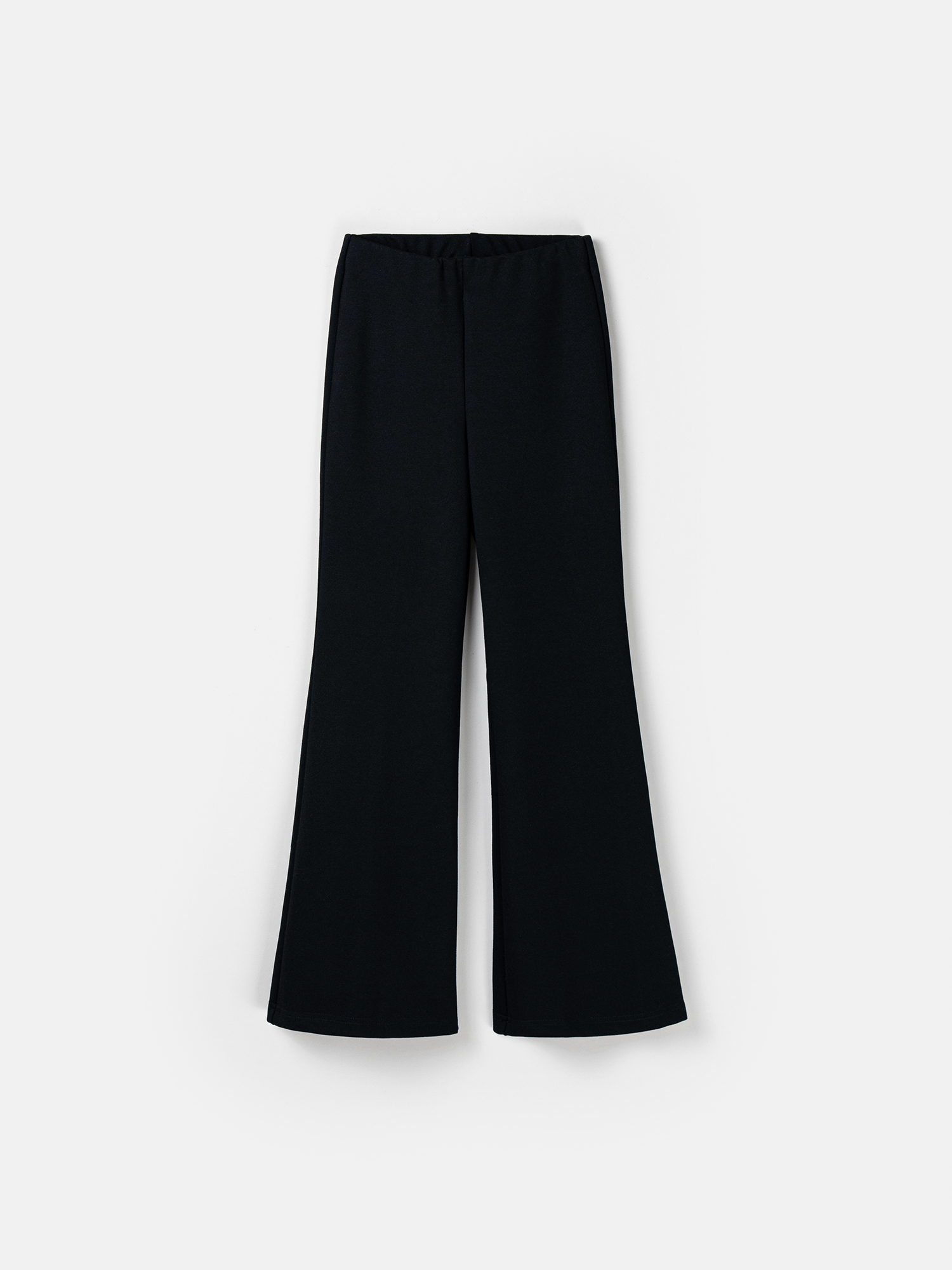 Обтягивающие брюки-клеш удобны для движения: на прогулку, в гости, на школьный праздник.