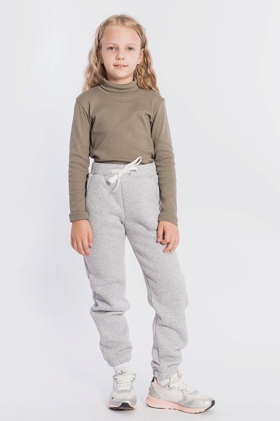 Тёплые, детские брюки выполнены из полотна с начёсом. По бокам расположены карманы, а для комфортной посадки в пояс вставлены шнур и резина. Низ брюк на резине.