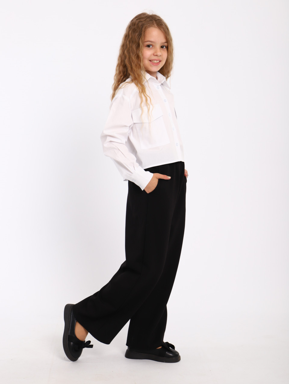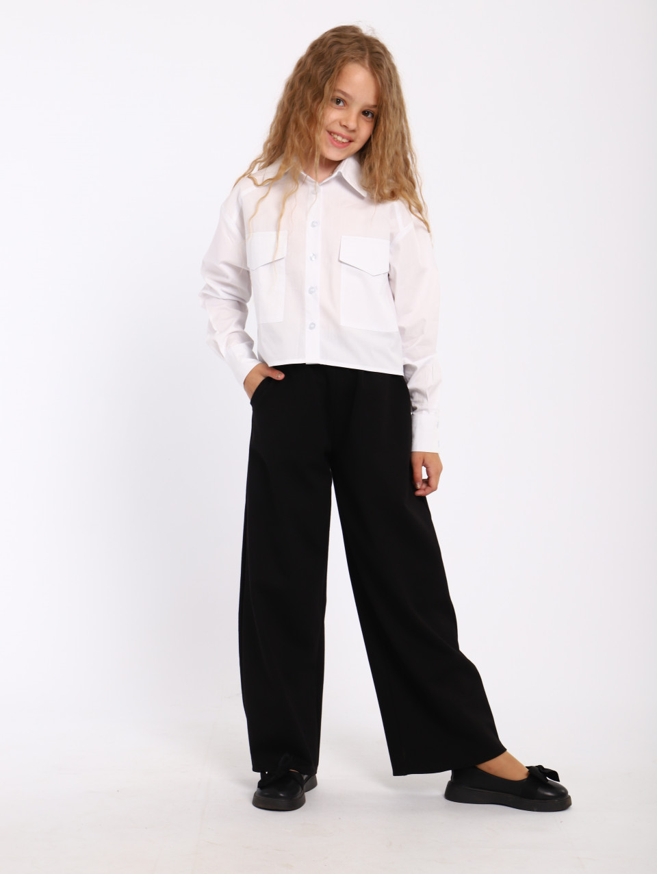 Классические брюки отлично подходят для 1 сентября, ребенку в них будет очень удобно и комфортно за счет свободного кроя.