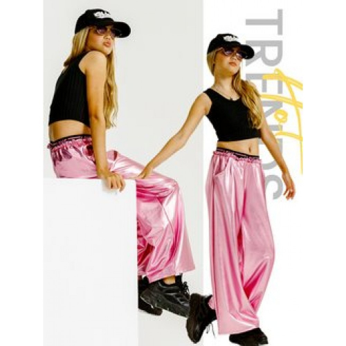 Брюки с эффектом металлик- несомненный тренд свежего сезона,- это отличный способ добавить нотку гламура, или , наоборот, придать дерзости в ваш повседневный образ. Более того, эти брюки можно носить в любом возрасте, на модной волне актуальны брюки любого фасона и кроя. Обратите внимание на оригинальную резинку, которая является декором данных брюк. Фасон брюк подойдет для девочек с любым типом фигур. Наши брюки с металлическим эффектом абсолютно универсальны, их можно сочетать с обычной футболкой, создавая спорт-шик, но если добавить пиджак, то получим офисный гламур, или вечерний романтик, добавив элегантную блузку, либо топ. Модель представлена в самых основных ультра-модных цветах в этом сезоне: серебряные брюки, золотые брюки и барби розовые брюки с которыми идеально сочетается любая цветовая палитра. Уверены, наши брюки станут самой главной вещью в вашем гардеробе и станут основой для создания самых модных образов.