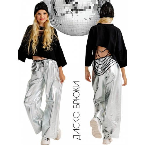 Диско брюки серебряные для подростков. Базовые брюки из плотного, хлопкового трикотажа.Модель очень практична и универсальна - летом можно надеть под любимую футболку; весной, или зимой - под свитер, или под свитшот, а в качественном трикотажном хлопке будет комфортно как зимой, так и прохладным летом, или теплой весной. Артикулы по рекомендации к образу, Вы сможете увидеть на дополнительных фотографиях. Серебряные брюки из эксклюзивного трикотажа с серебряным напылением. Основа ткани - хлопок 70%. трикотаж футер 3 нити. брюки с боковыми карманами, оригинальным эффектным поясом, на шнурке, для более плотного прилегания. Шорты для стильных луков, для самых модных и смелых девочек, отличное решение для создания как сценческого, так и повседневного образа. Благодарим Вас за выбор нашей