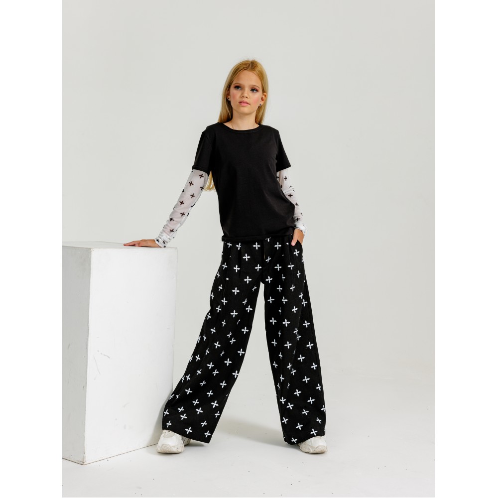 Джинсы из хлопка на молнии и пуговице, с карманами, широкого кроя. Джинсы  для девочки с оригинальным принтом отлично подойдут для повседневной носки: в школу, на прогулку, на каждый день. Прямые джинсы на высоких и невысоких девочек подростков. Широкие детские джинсы легко сочетать с различными цветами и формами. Джинсы  сочетаются с футболками, свитшотами, худи. Джинсы трубы для девочки - маст хев этого сезона. Джинсы подростковые для девочки с высокой посадкой – самая стильная модель 2023-2024. Такие штаны на молнии – это отличное решение в гардероб на круглый год. Свободные стильные джинсы идут размер ( по росту) , если ребенок более плотного телосложения, рекомендуем брать на размер больше.