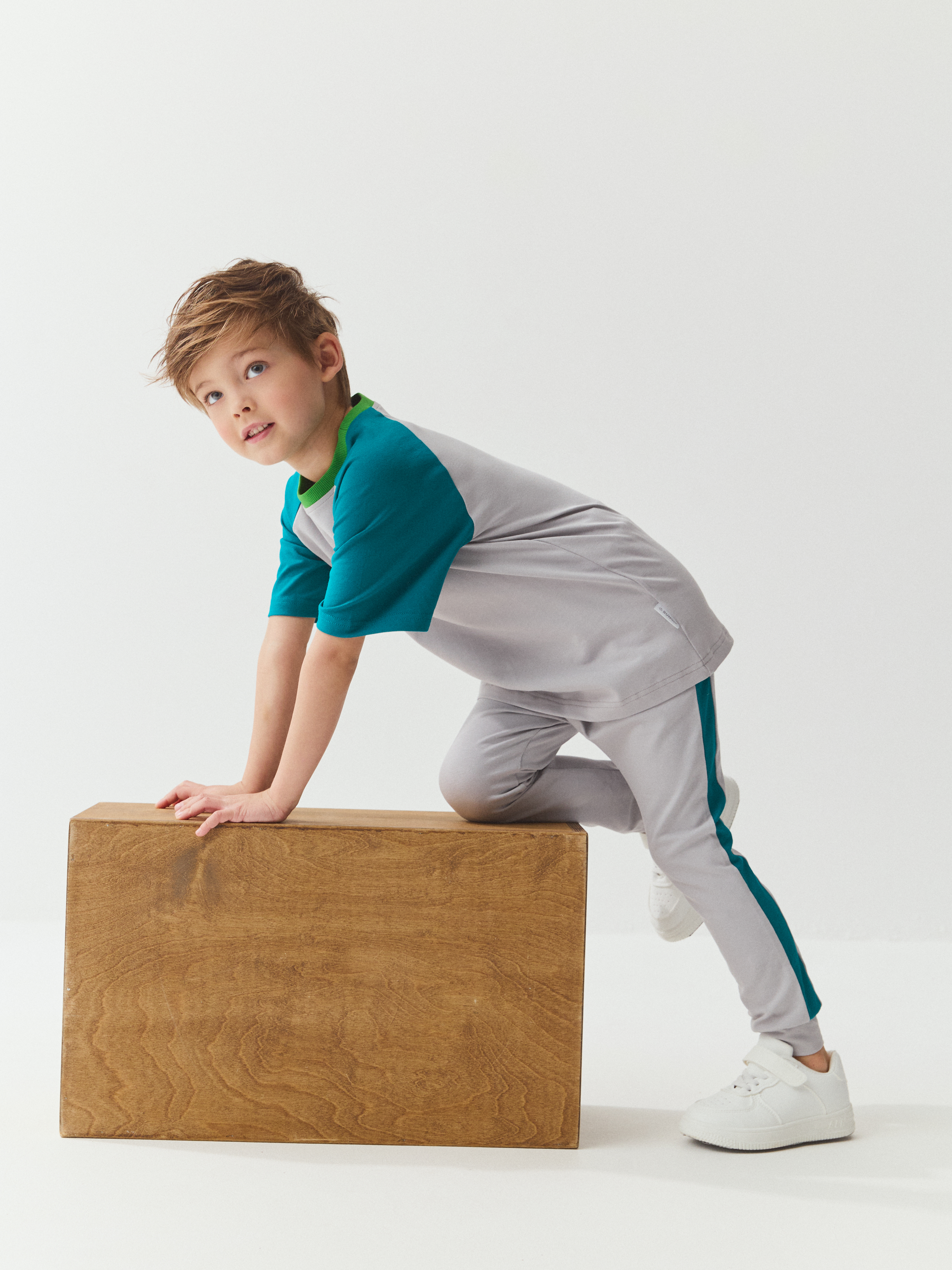 Пояс на резинке мягко фиксируется на талии, а манжеты по низу не дают брюкам задираться даже во время энергичных игр.