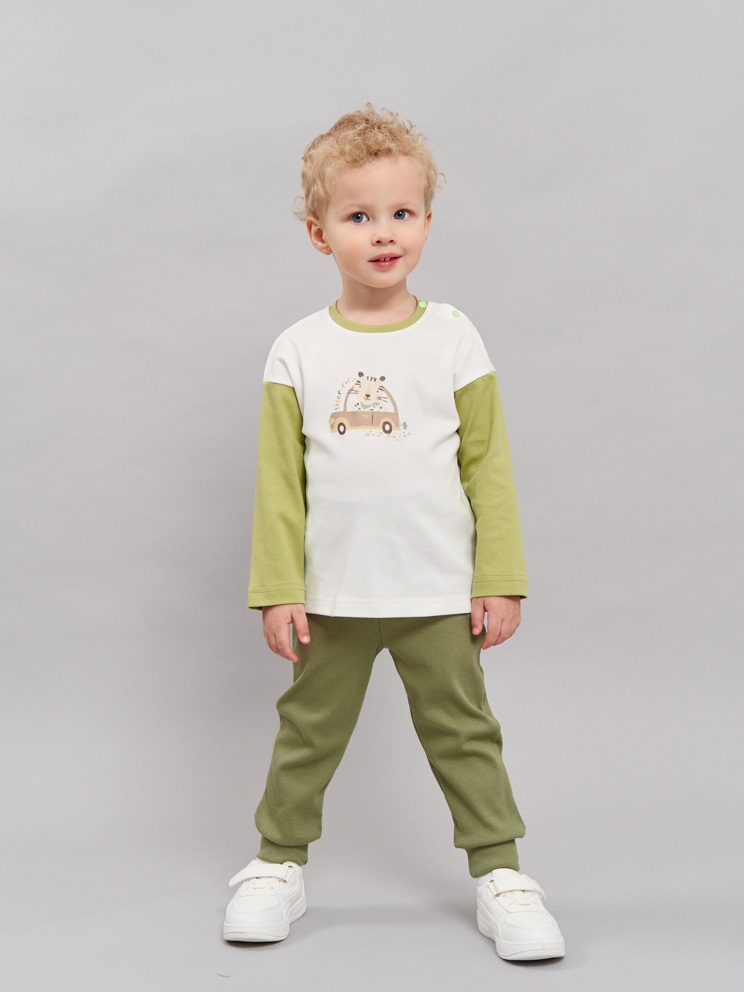 Свободный крой со спущенным шагом комфортен для ношения с подгузником и не стесняет малышей в играх и прогулках.