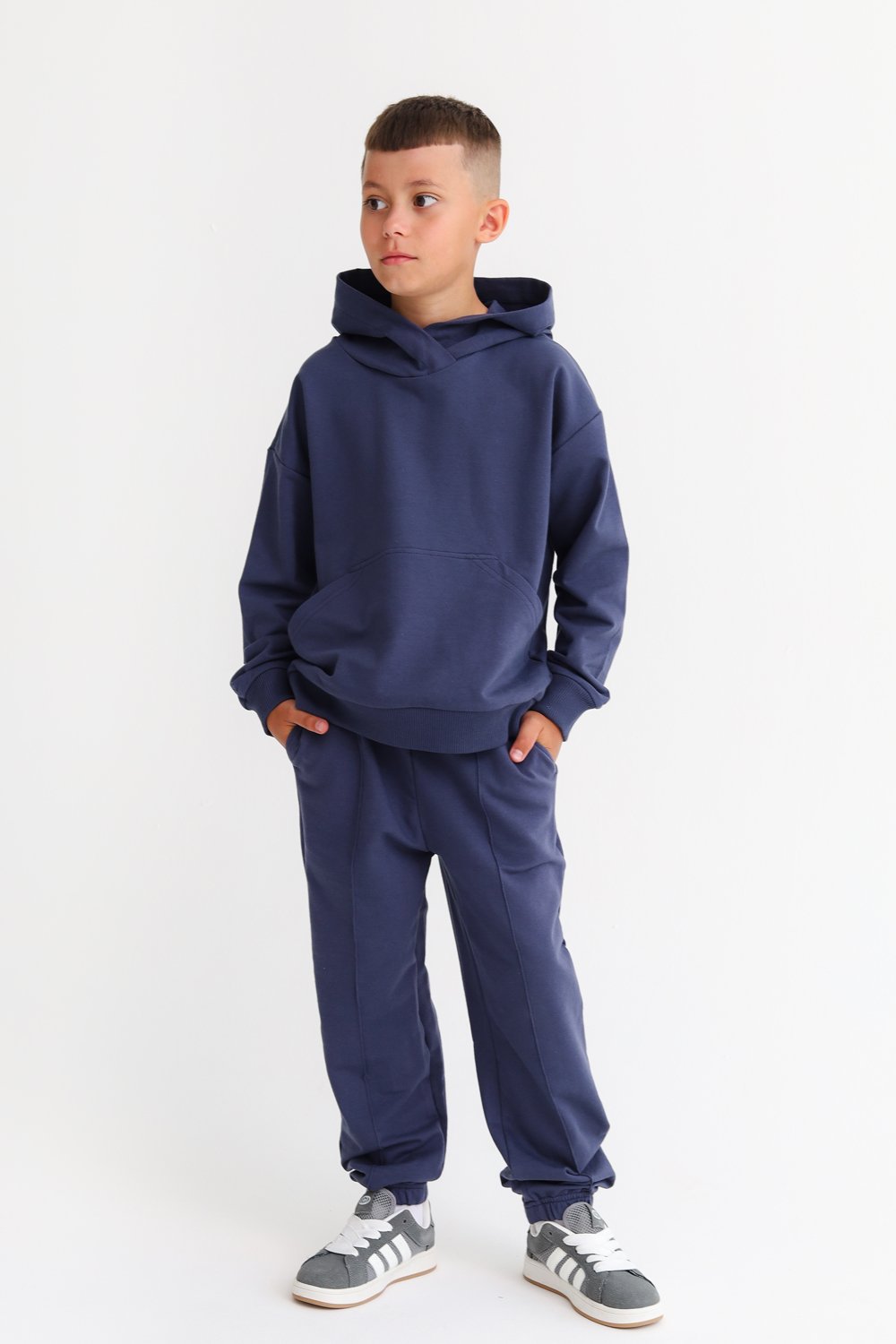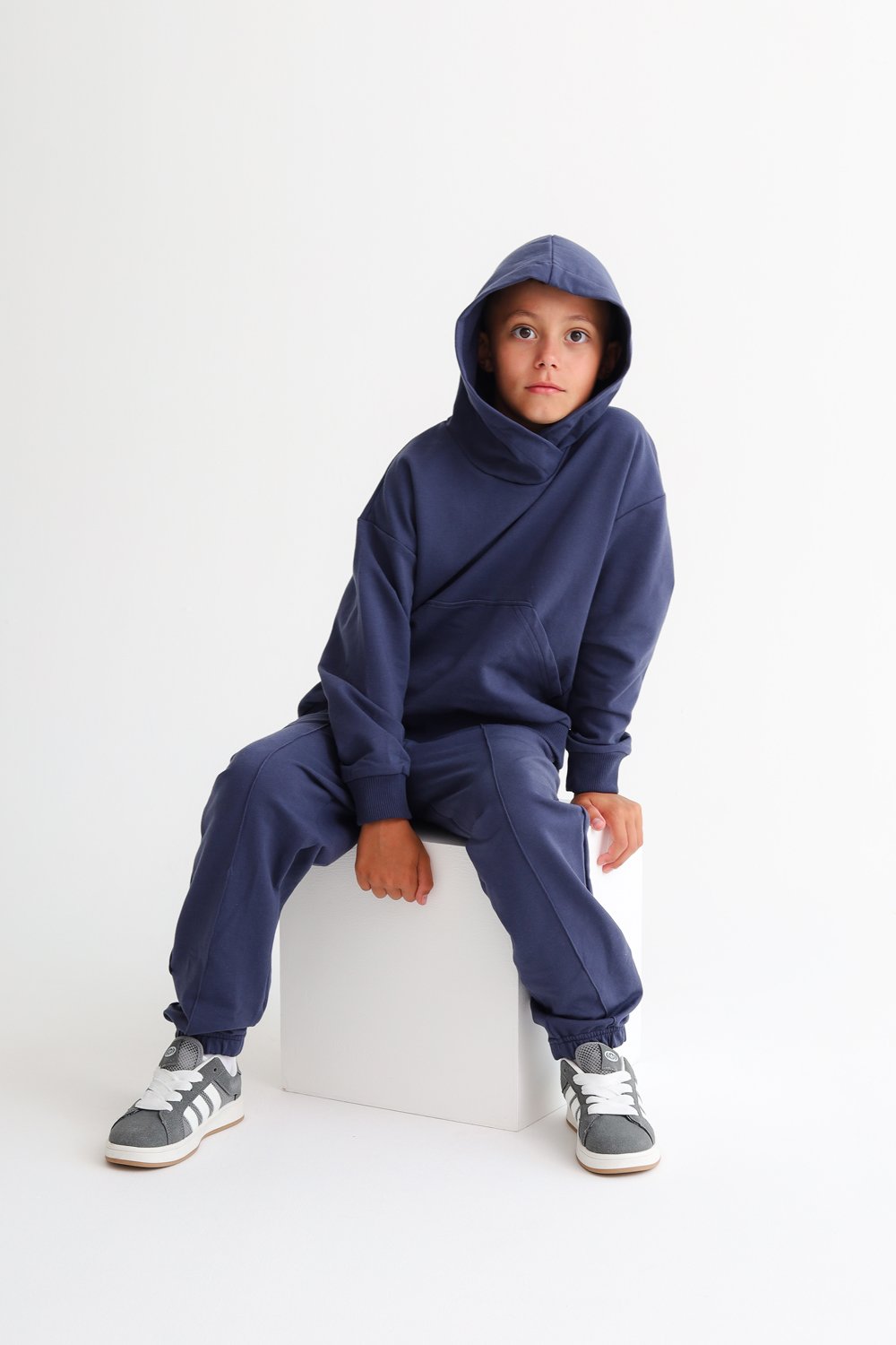 Брюки с декоративным швом-стрелкой. Пояс на широкой резинке. Цельнокроенные манжеты на штанинах. Карманы в боковых швах